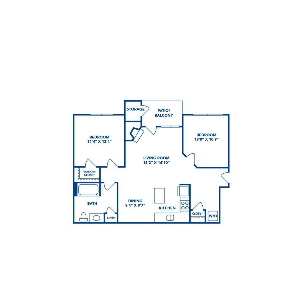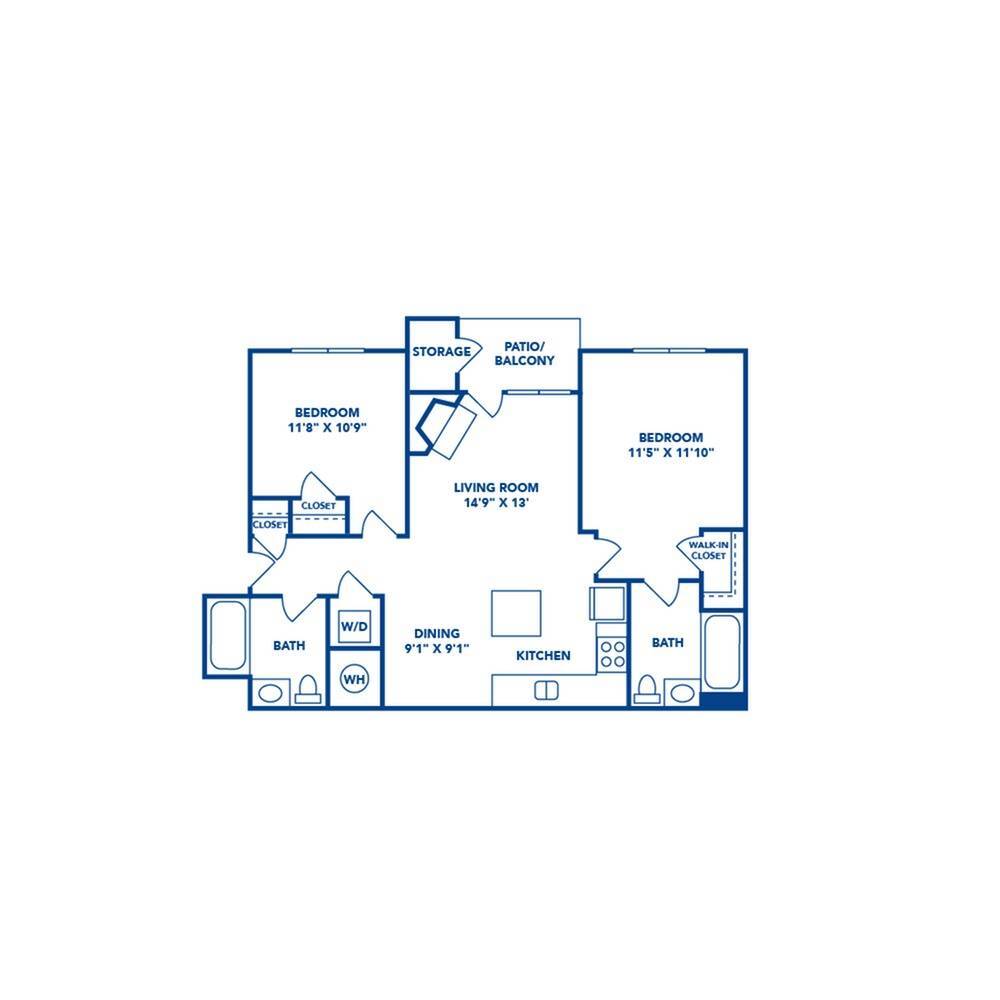 2 Dormitorios, 1 Baño, 990 pies²Disponible January 10, 2026Galería del Modelo