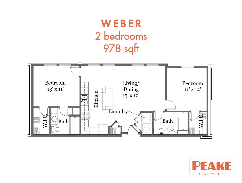 Weber - Plano 2 Unidad de apartamento: 305CHModelo de apartamento: Weber$1,6992 Dormitorios, 2 Baños, 978 sq ftDisponible April 20, 2026