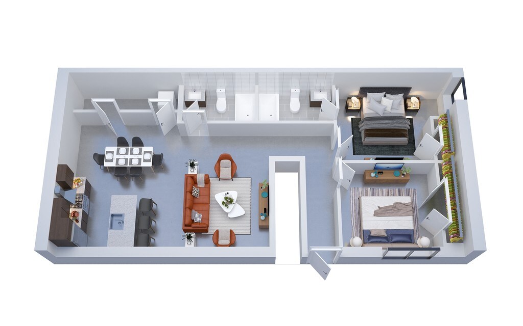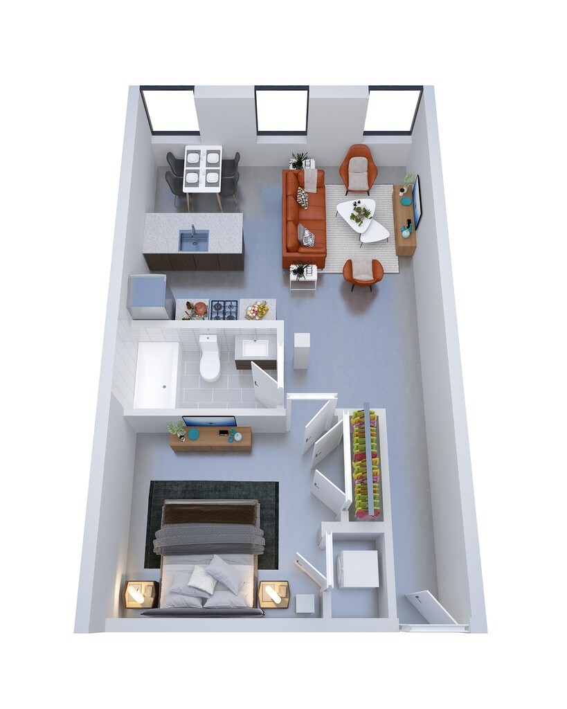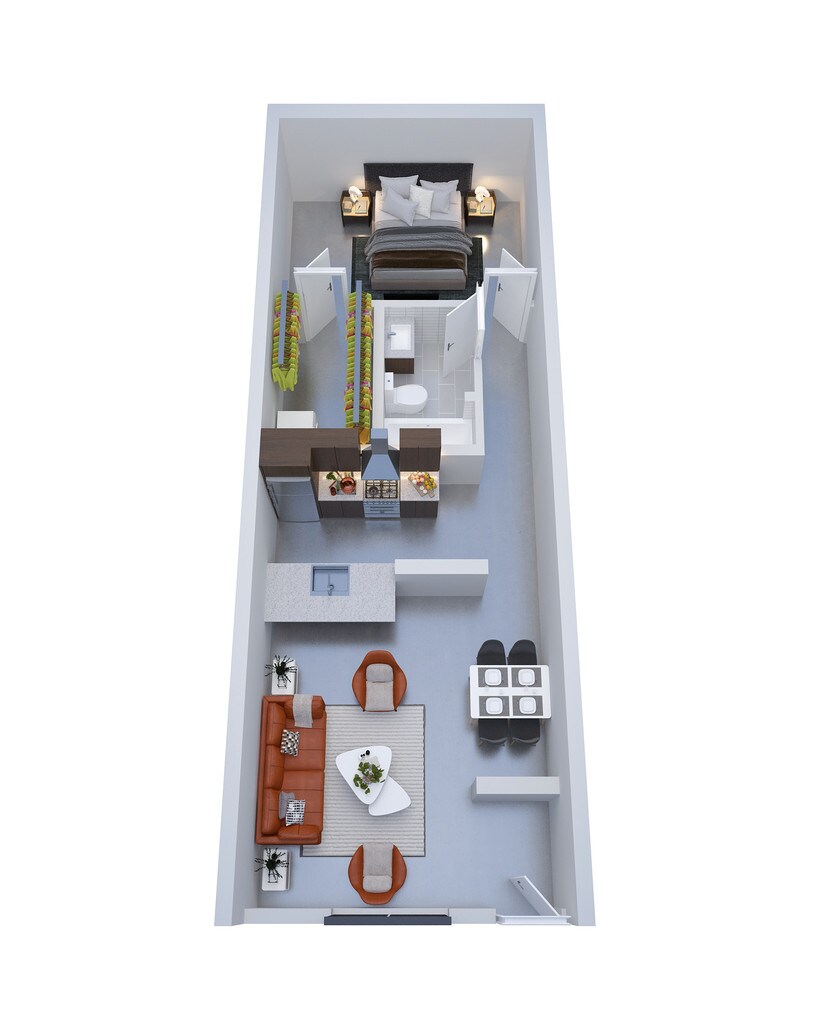 1 Dormitorio, 1 Baño, 637 pies²Galería del Modelo