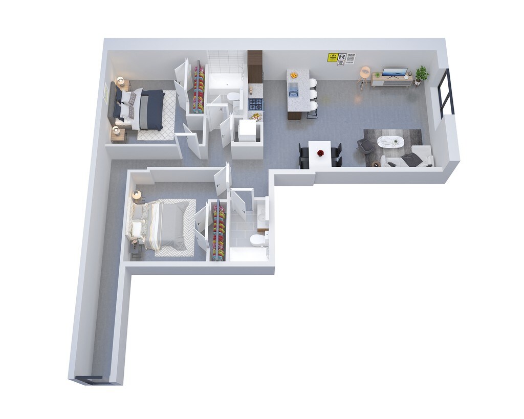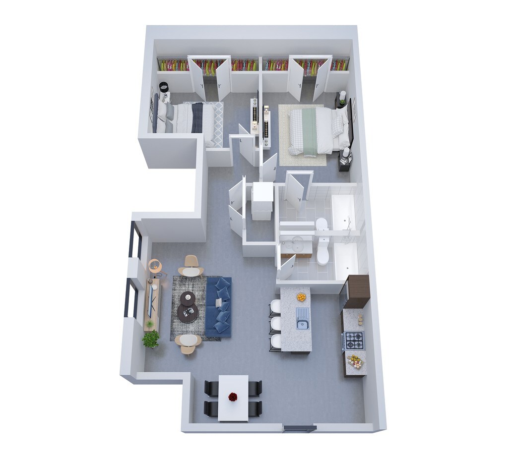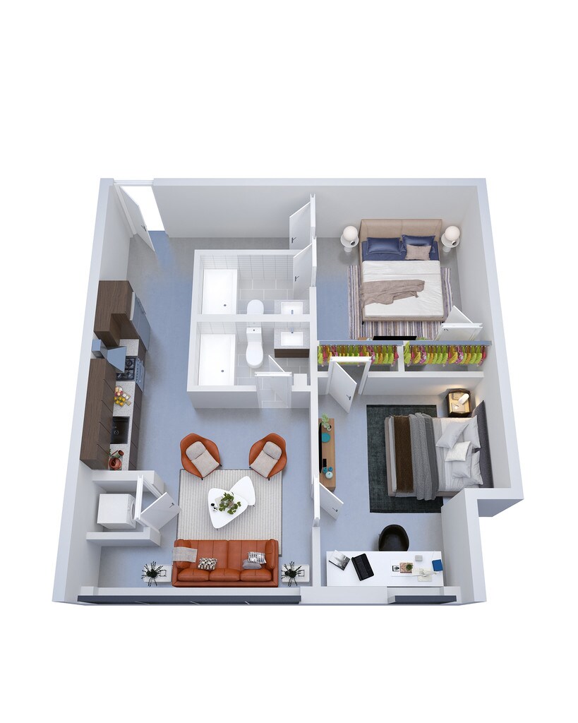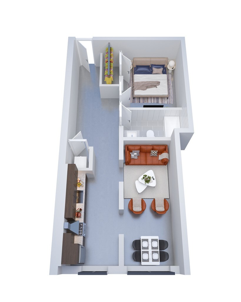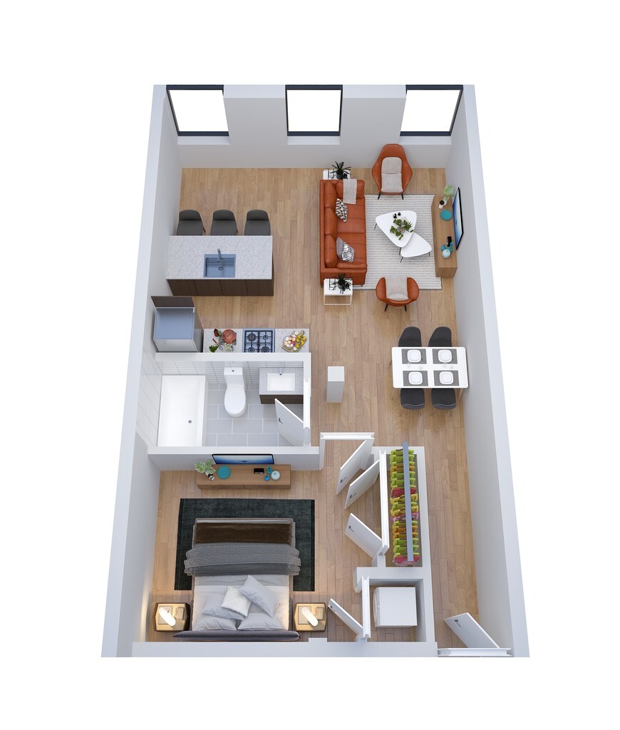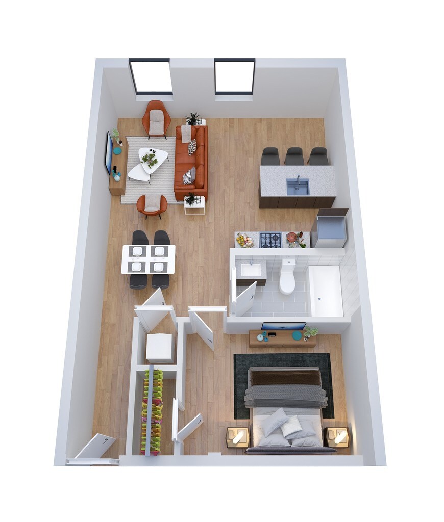 1 Dormitorio, 1 Baño, 641 pies²Galería del Modelo