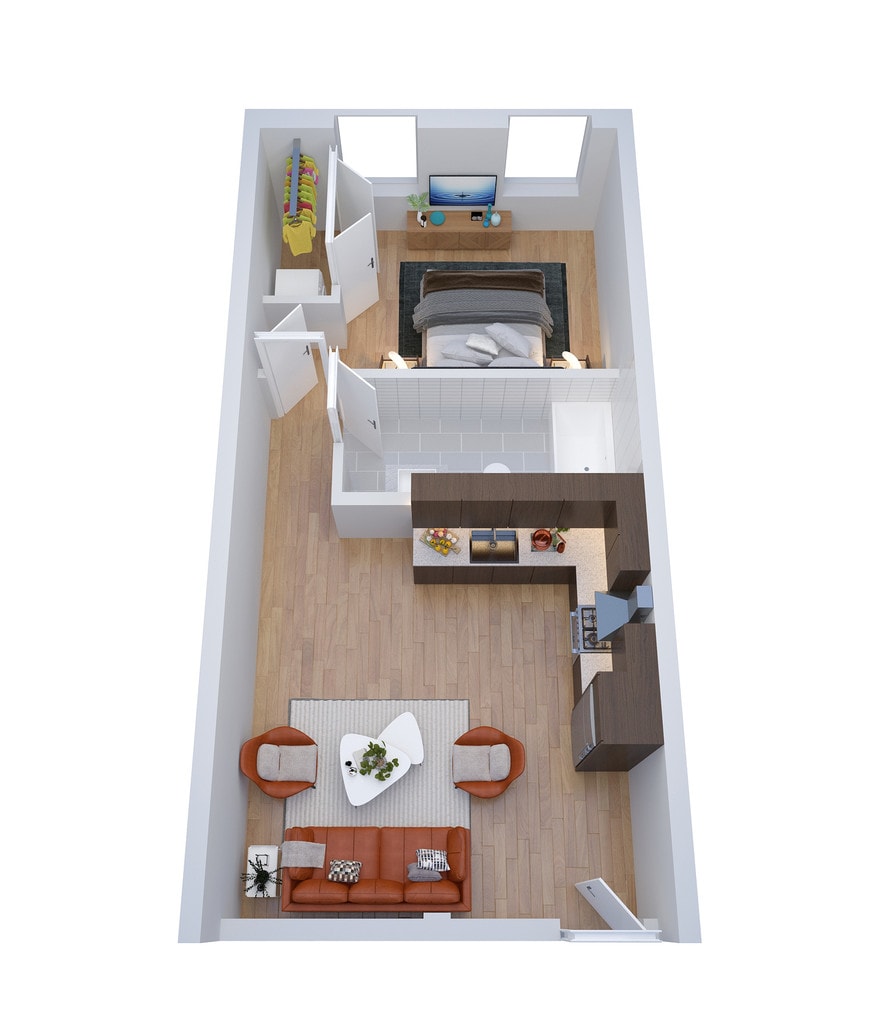 1 Dormitorio, 1 Baño, 565 pies²Galería del Modelo