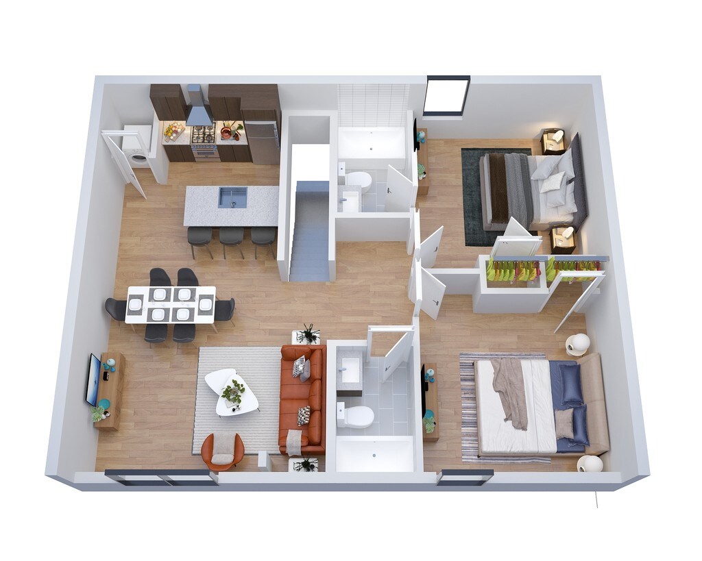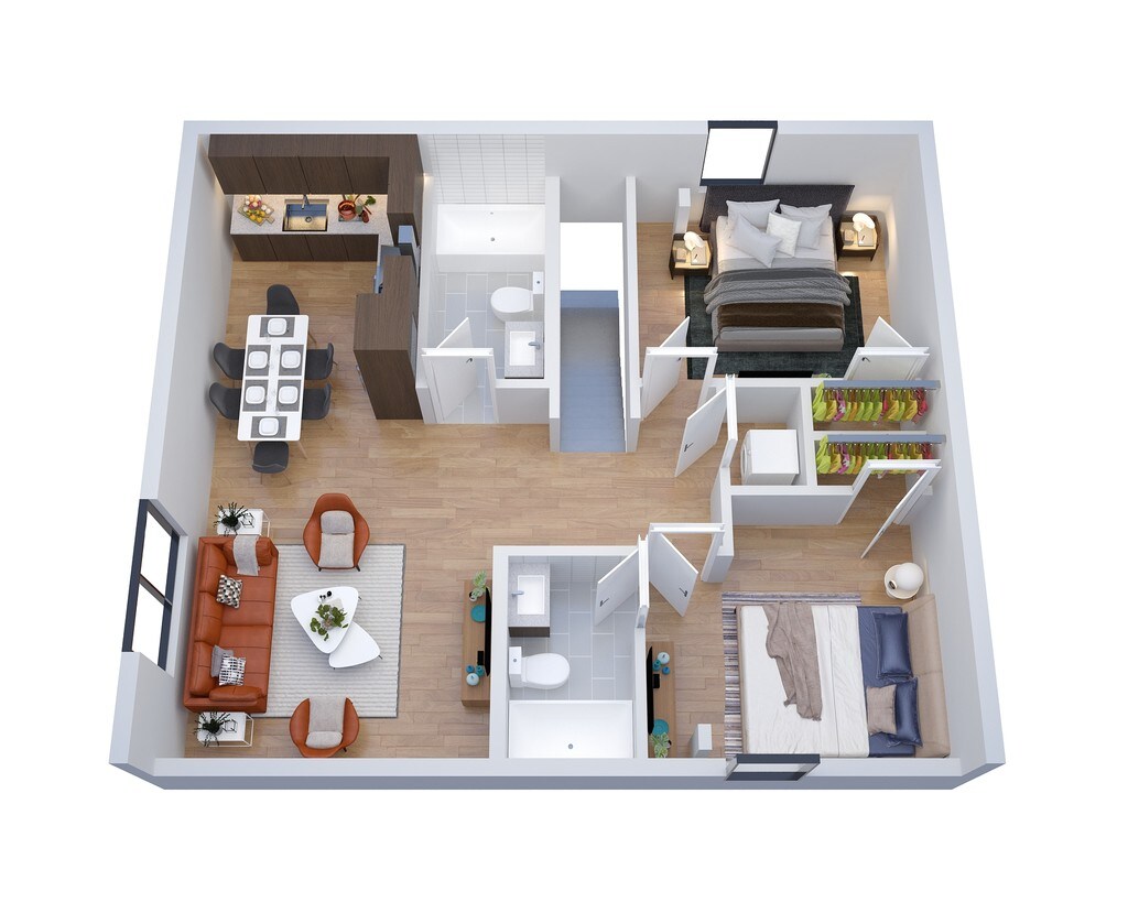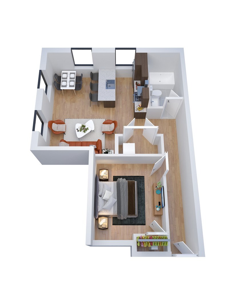 1 Dormitorio, 1 Baño, 678 pies²Galería del Modelo