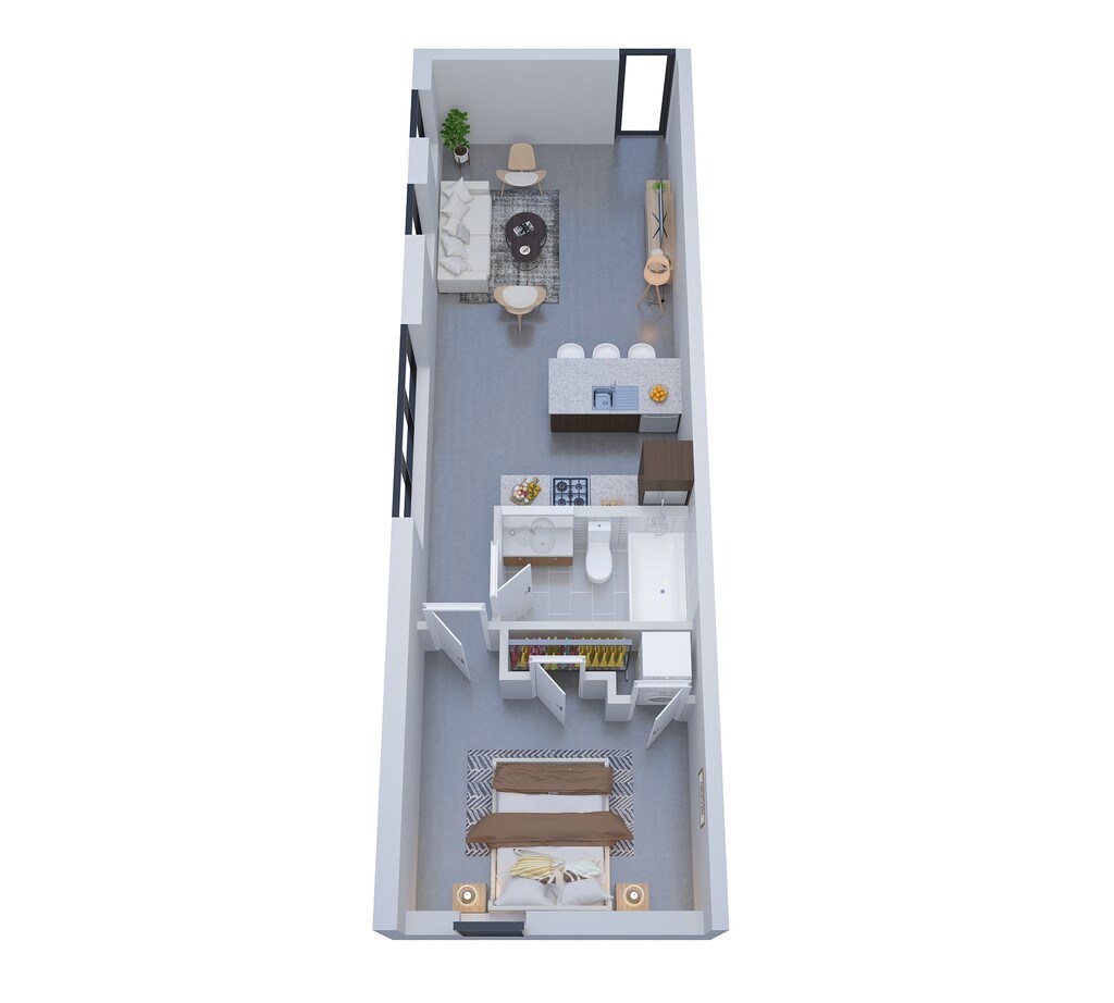 1 Dormitorio, 1 Baño, 639 pies²Galería del Modelo