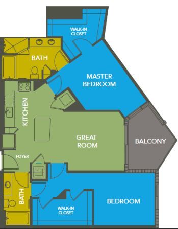 Modelo de apartamento: A6Desde $2,1511 Dormitorio, 1 Baño, 690 sq ftDisponible Ahora![]()