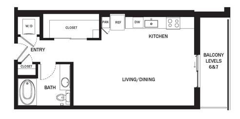 Estudio, 1 Baño, 587 pies²Disponible AhoraGalería del Modelo