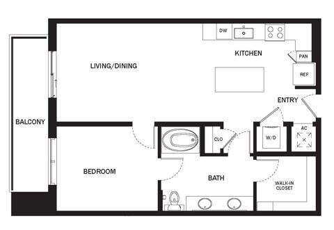 Modelo de apartamento: A03Desde $1,330Estudio, 1 Baño, 587 sq ftDisponible Ahora![]()