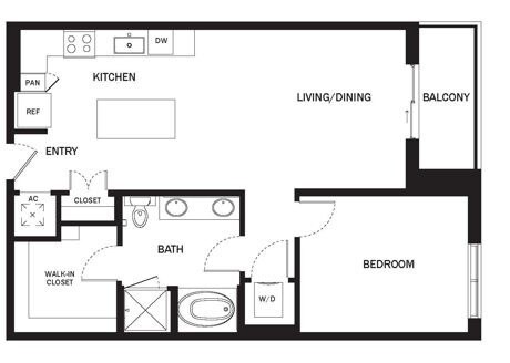 Unidad de apartamento: 407Modelo de apartamento: A01Desde $1,510Estudio, 1 Baño, 561 sq ftDisponible AhoraPlano: A02