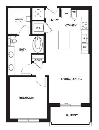 A02 - Plano 1 Unidad de apartamento: 406Modelo de apartamento: A02Desde $1,364Estudio, 1 Baño, 577 sq ftDisponible February 23, 20261 Dormitorio