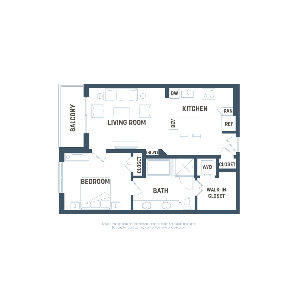1 Dormitorio, 1 Baño, 723 pies²Disponible AhoraGalería del Modelo
