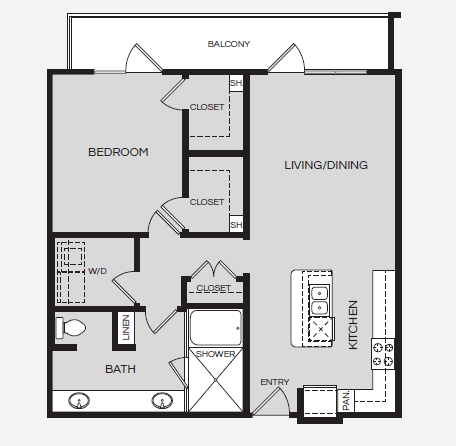 Modelo de apartamento: A1SDesde $1,3081 Dormitorio, 1 Baño, 676 sq ftDisponible AhoraLos planos son representaciones artísticas. Todas las dimensiones son aproximadas. El producto y las especificaciones reales pueden variar en tamaño o detalle. No todas las características están disponibles en cada vivienda en alquiler. Por favor, consulta con un representante para obtener más detalles.