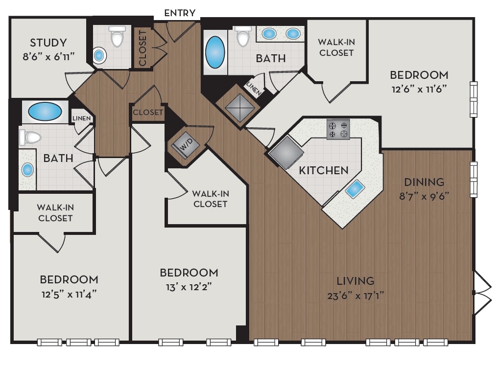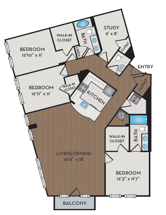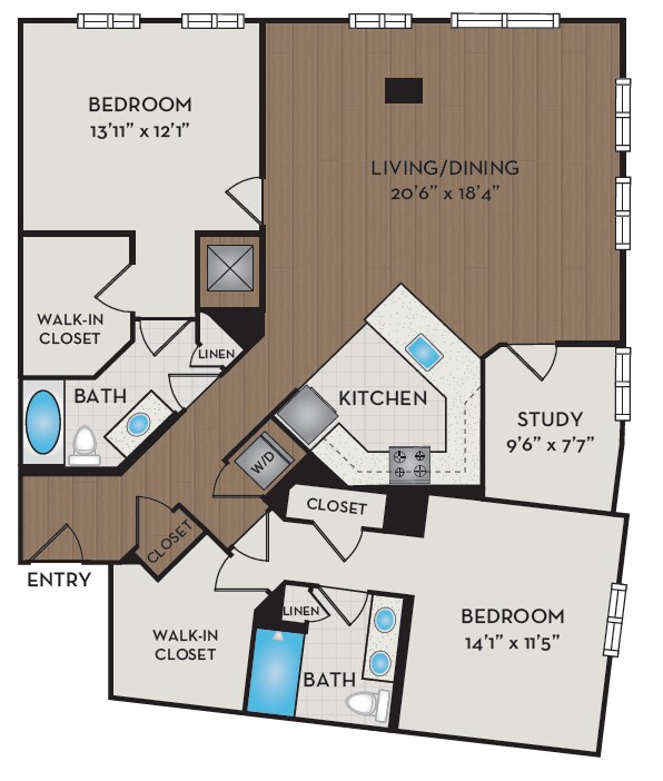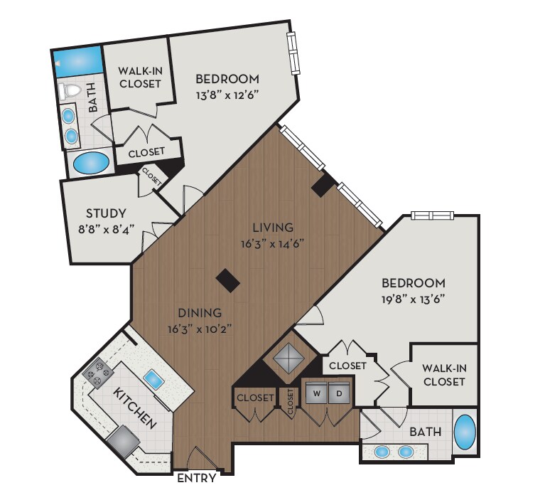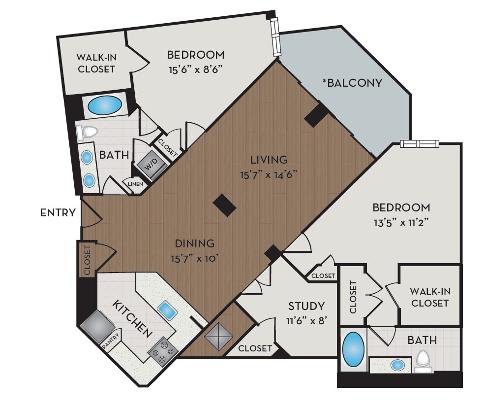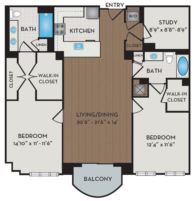 Unidad de apartamento: 403Modelo de apartamento: A8D$2,5131 Dormitorio, 1 Baño, 898 sq ftDisponible AhoraA10D