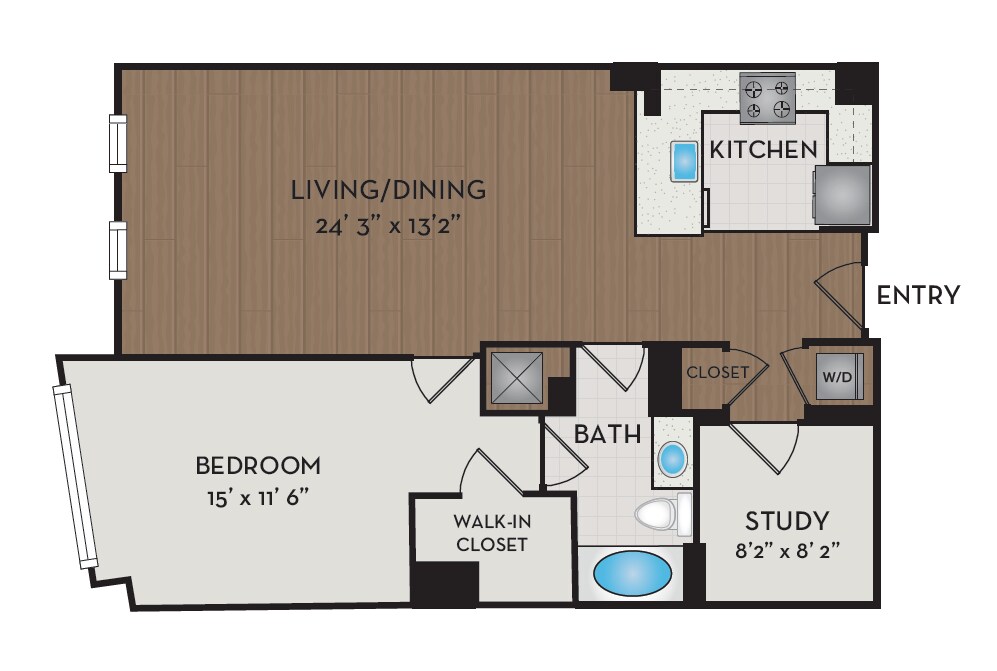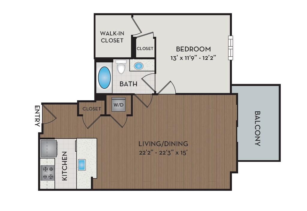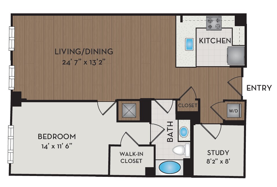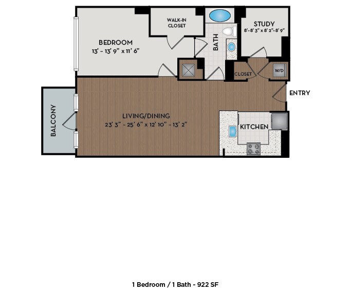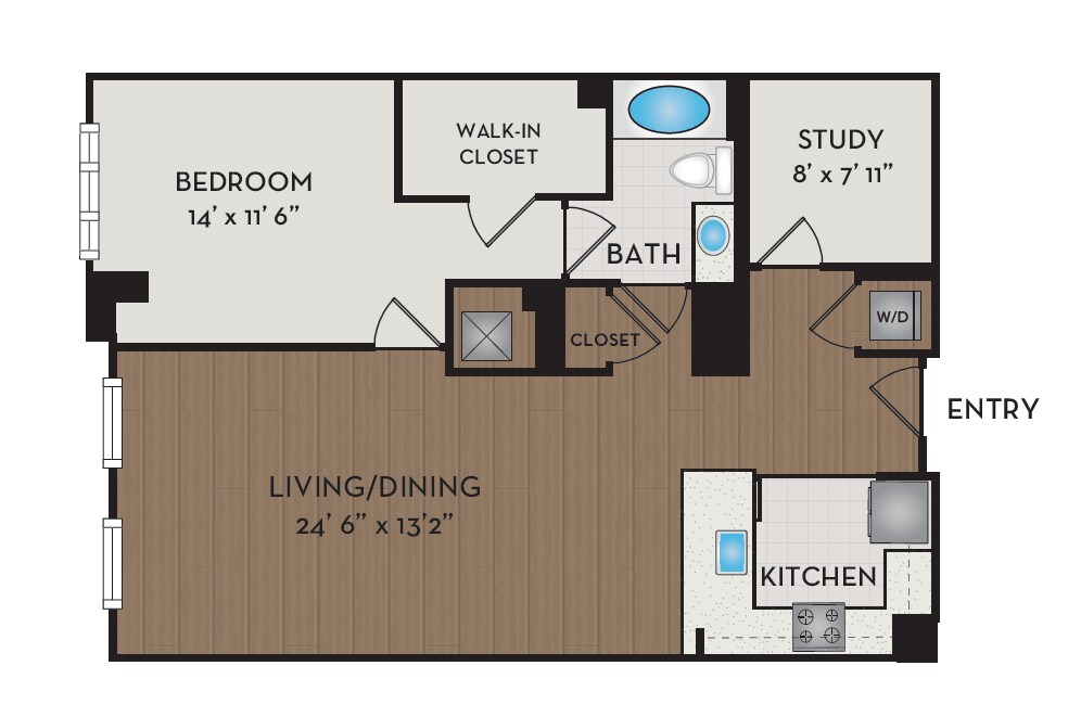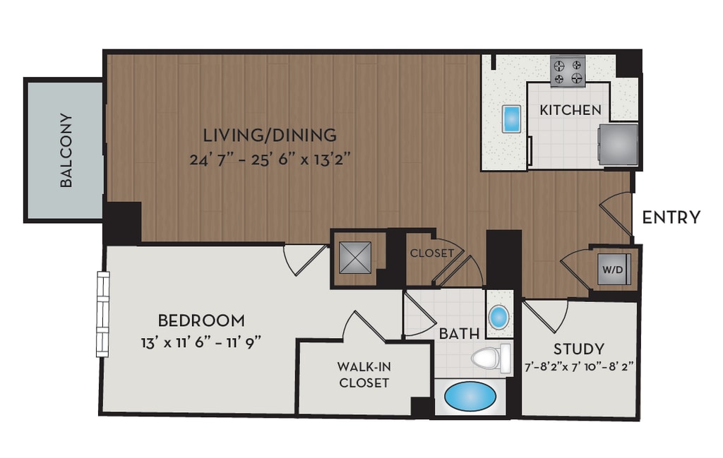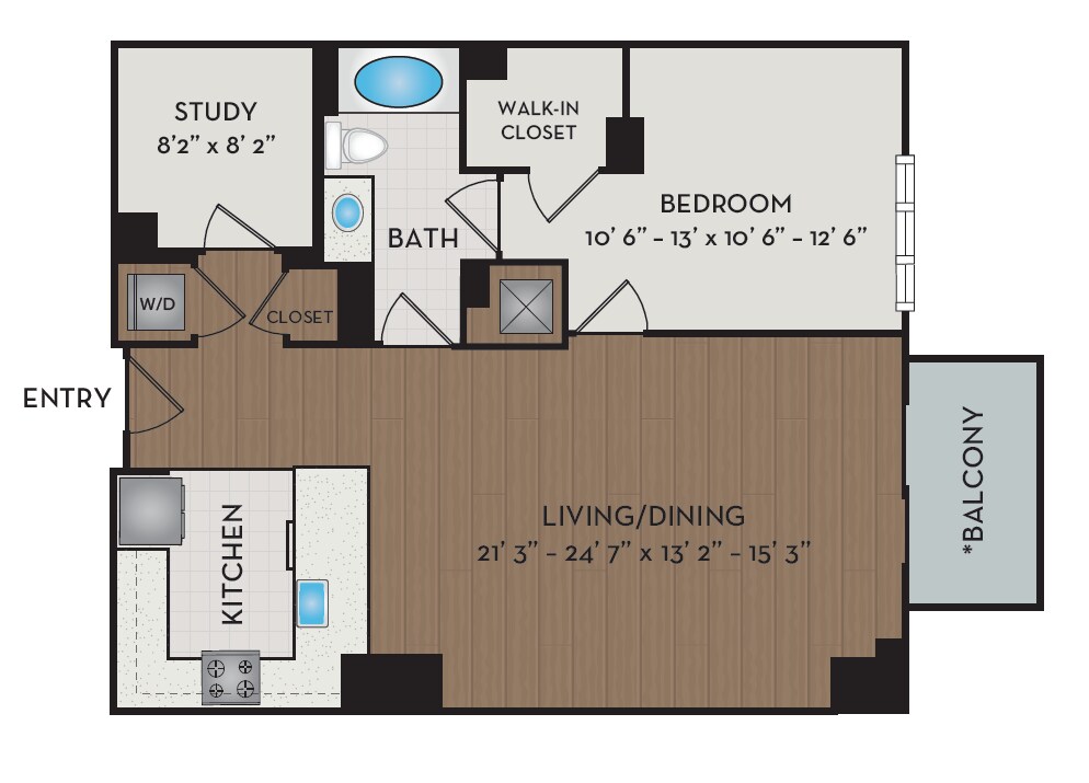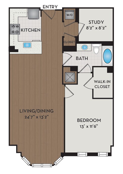1 Dormitorio, 1 Baño, 876 pies²Disponible AhoraGalería del Modelo
