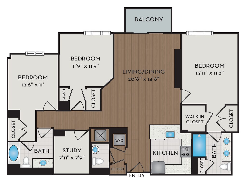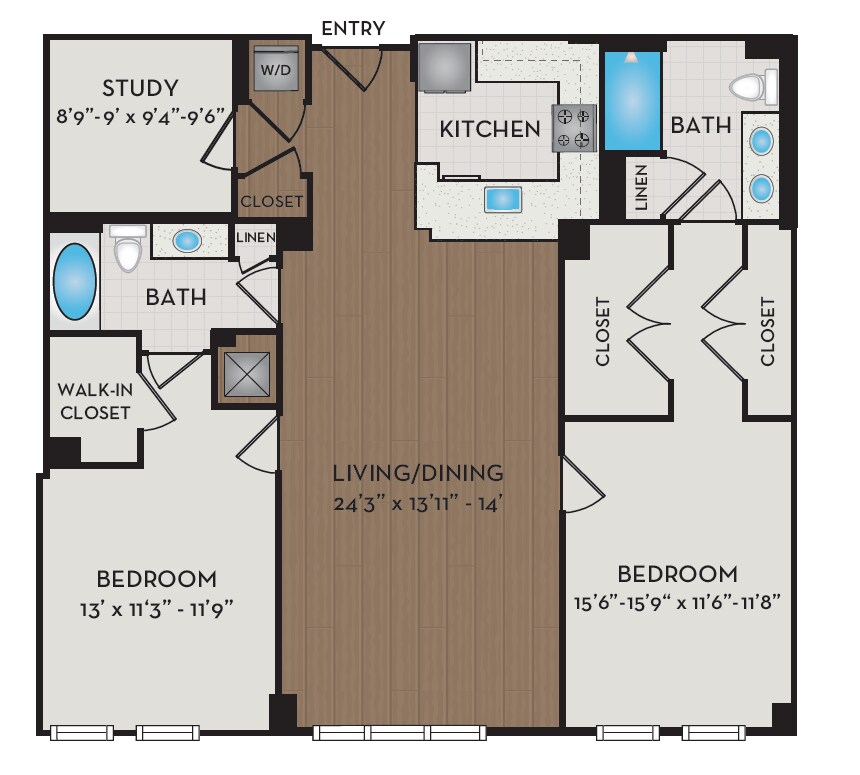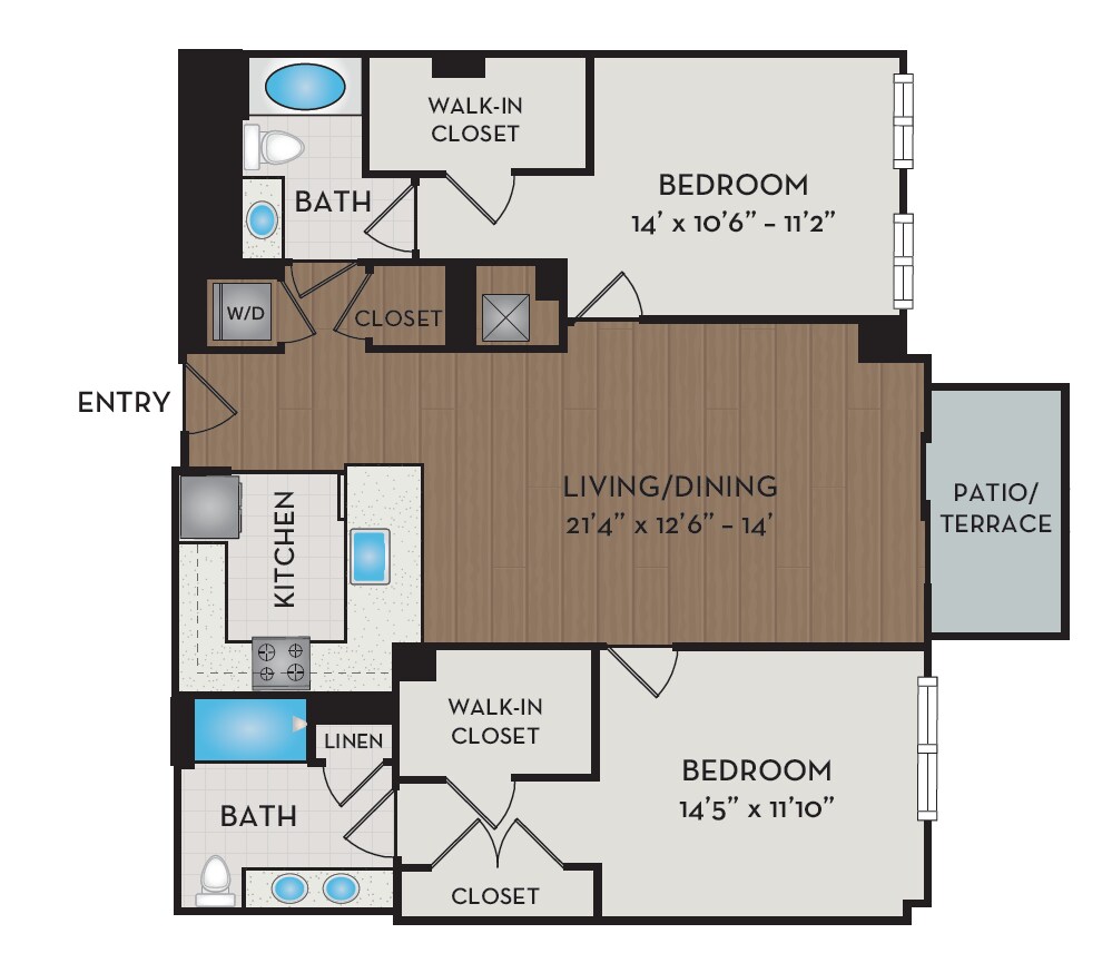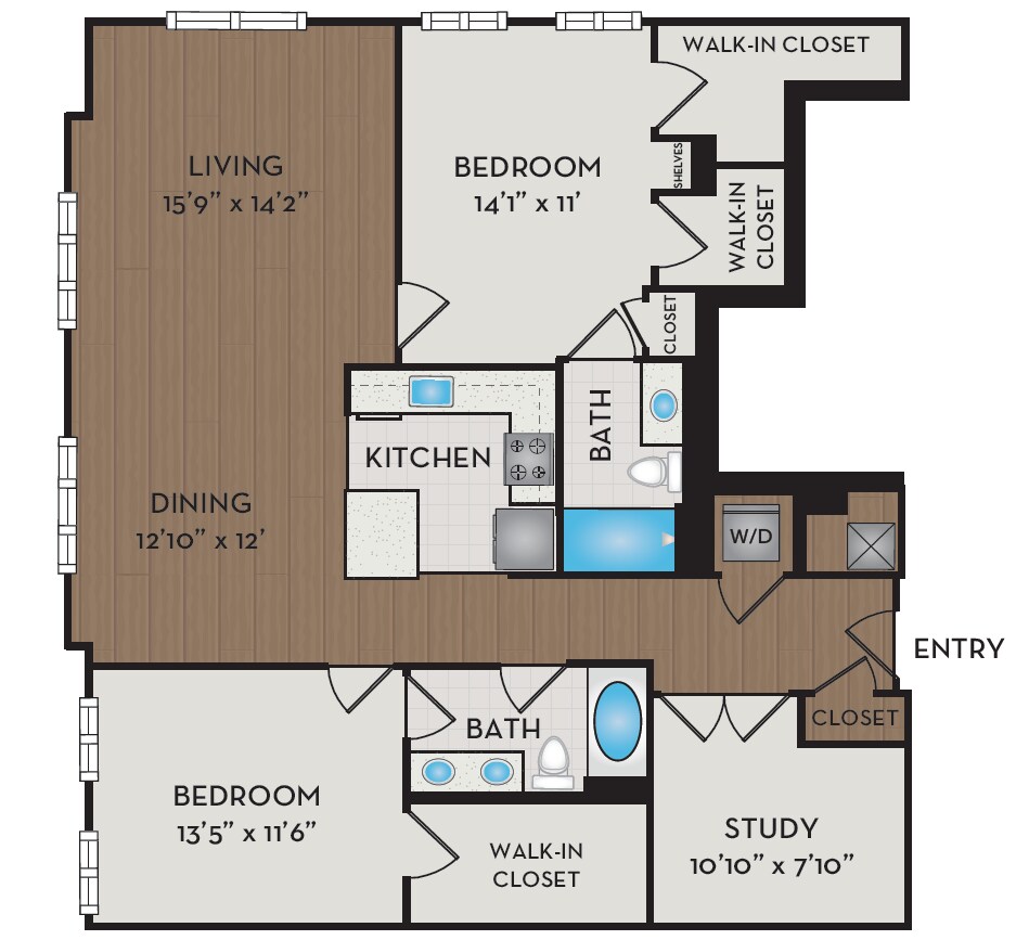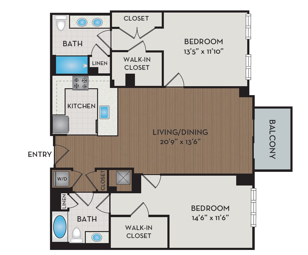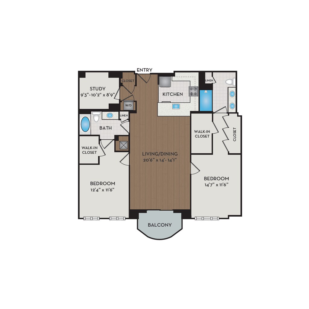 1 Dormitorio, 1 Baño, 876 pies²Disponible AhoraGalería del Modelo