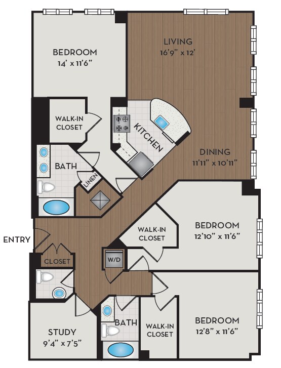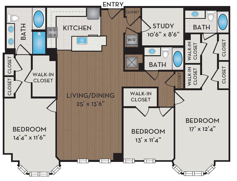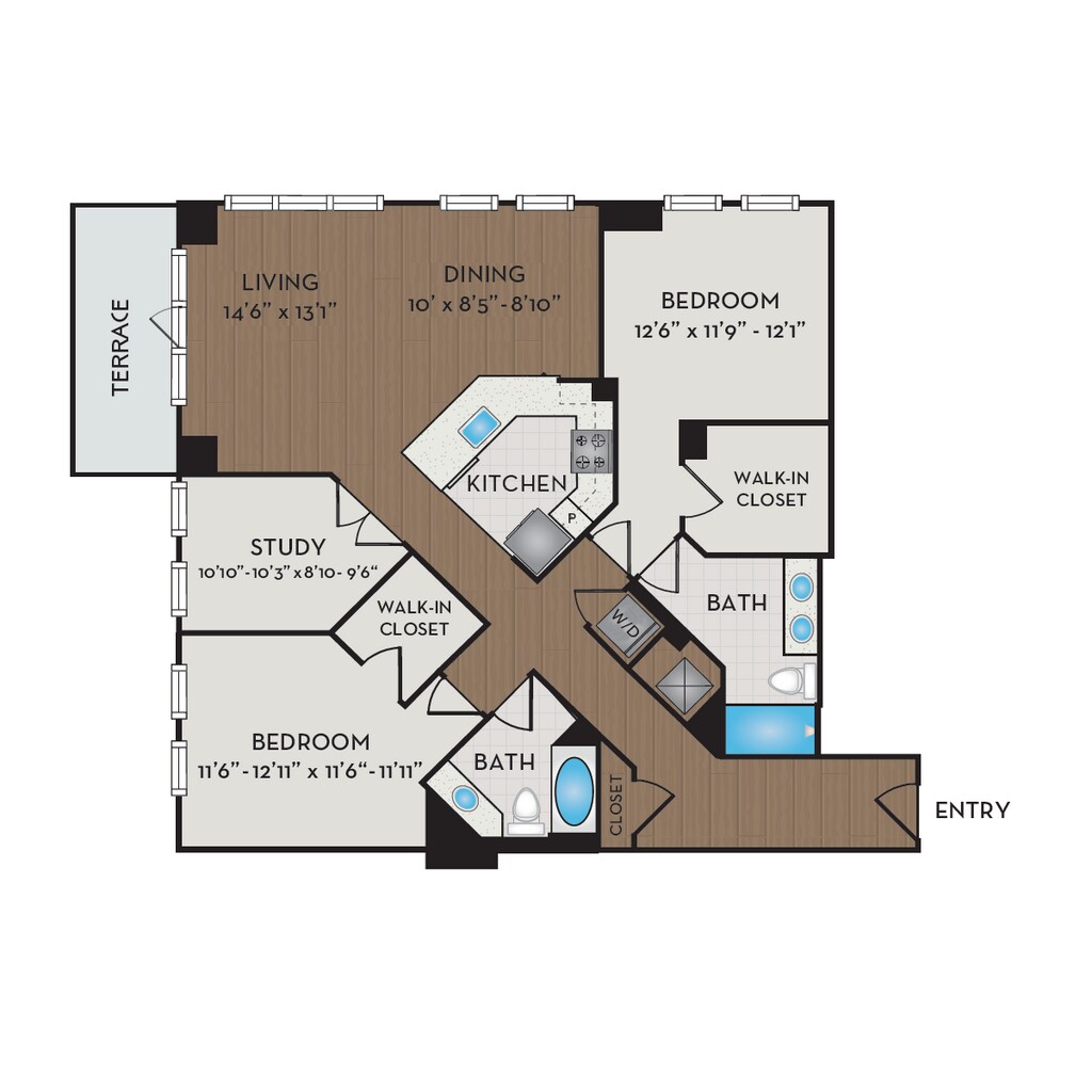A10D - Plano 1 Unidad de apartamento: 405Modelo de apartamento: A10D$2,5041 Dormitorio, 1 Baño, 911 sq ftDisponible December 23, 2025A17D.1