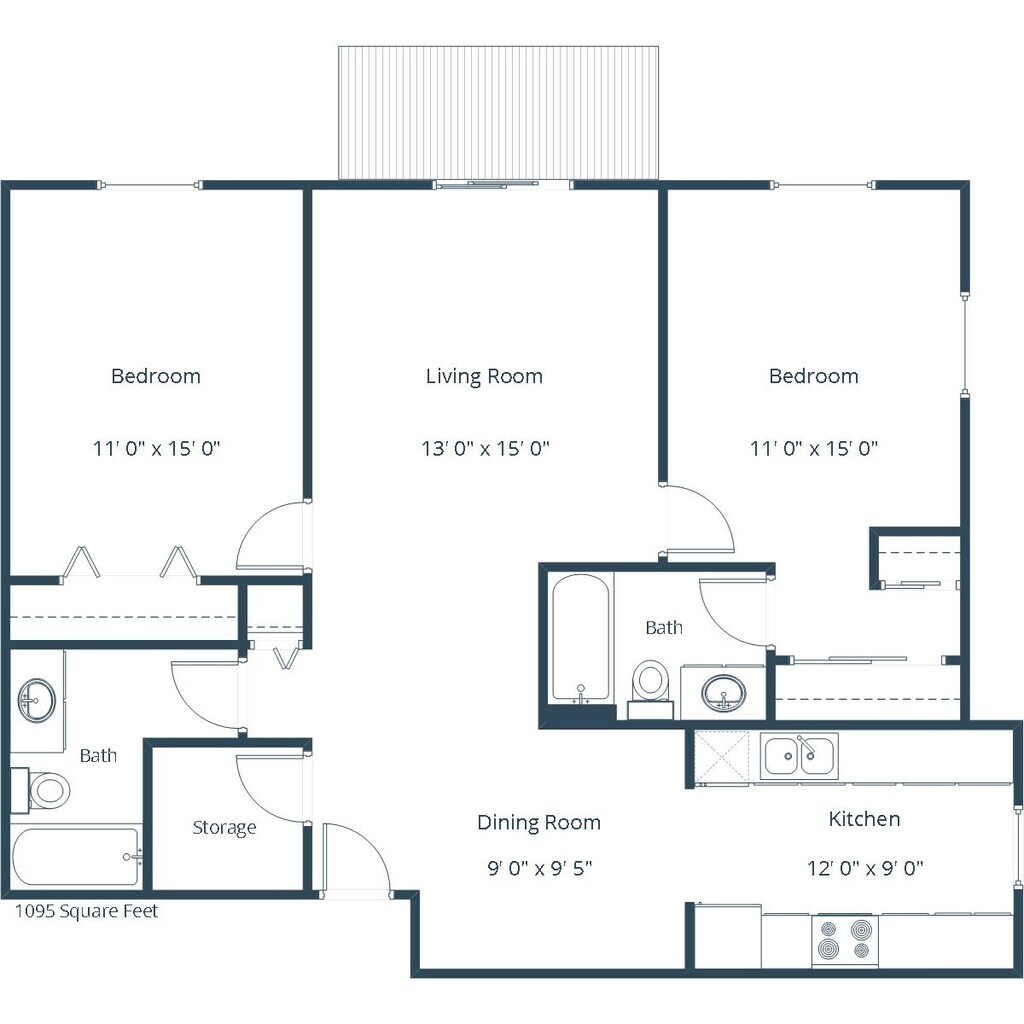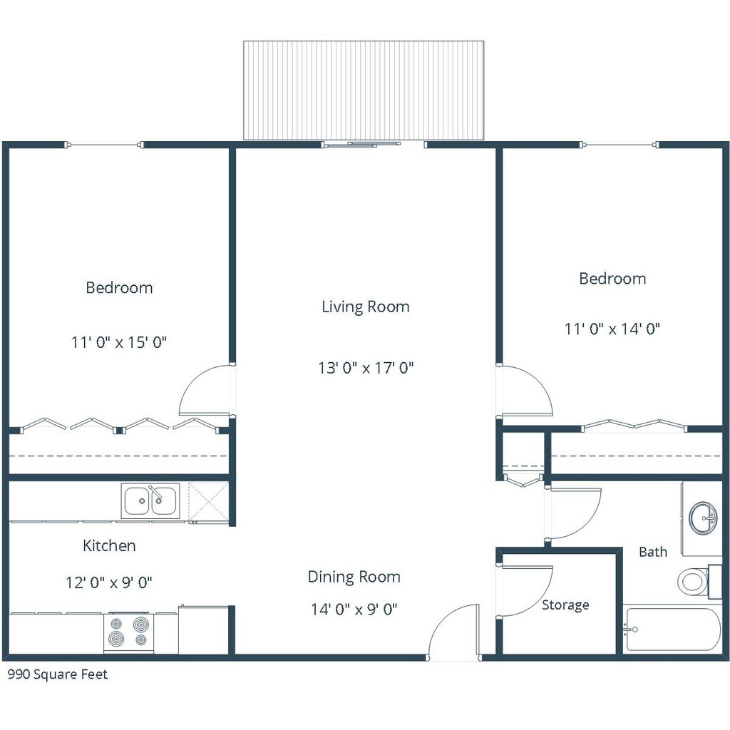 2 Dormitorios, 1 Baño, 990 pies²Galería del Modelo