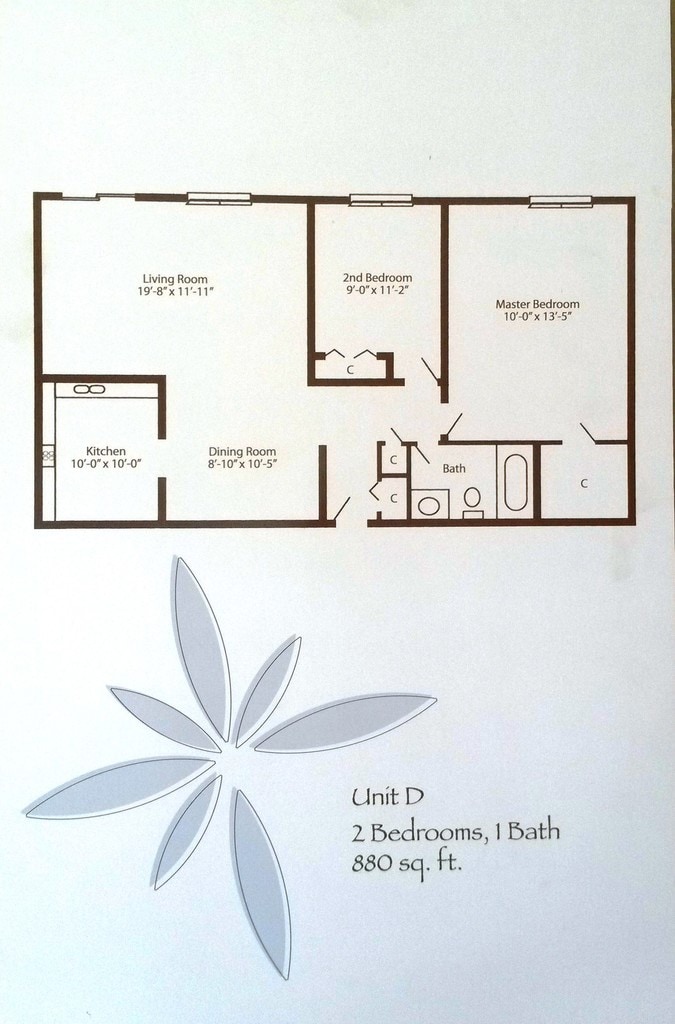 Modelo de apartamento: D2 Dormitorios, 1 Baño, 880 sq ftNo Disponible![]()