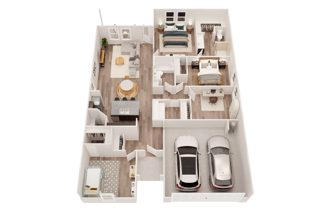 3 Dormitorios, 2 Baños, 1297 pies²Galería del Modelo