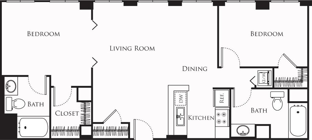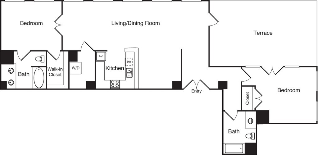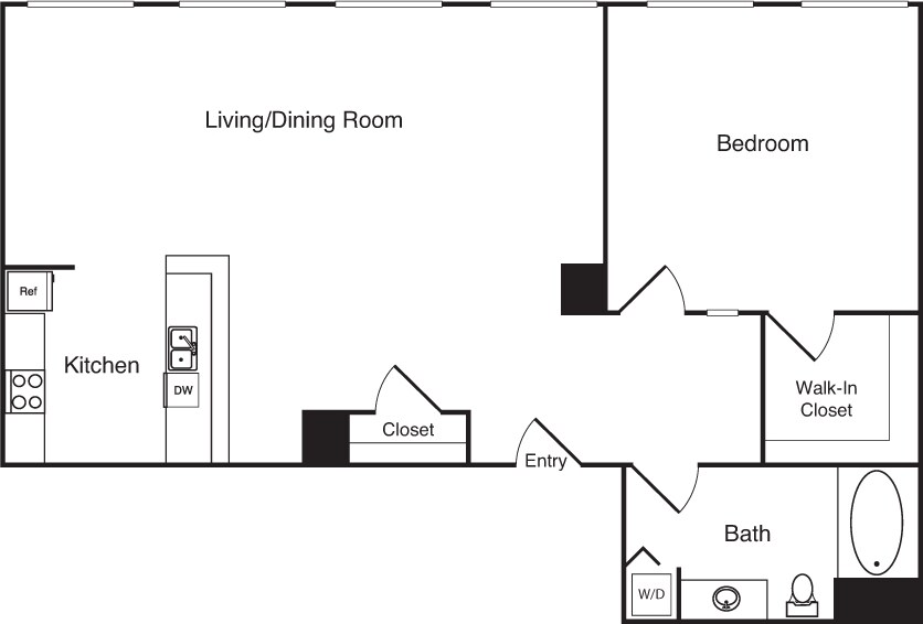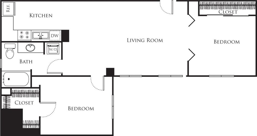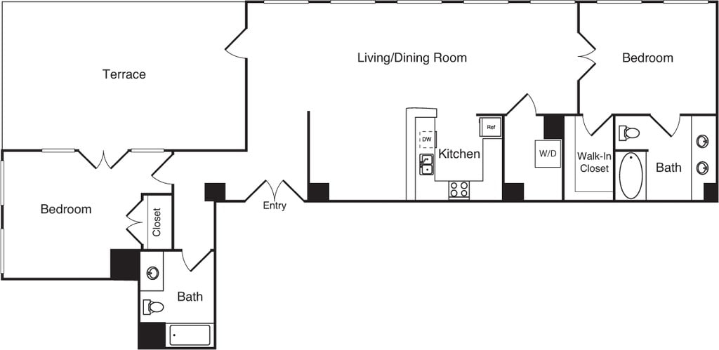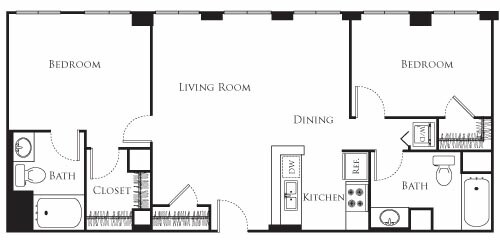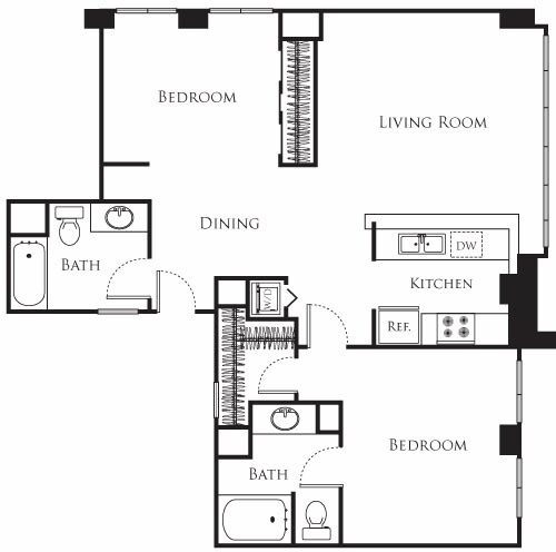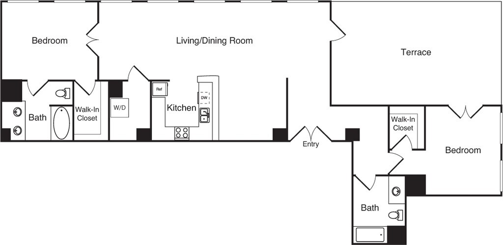 15 - Plano 1 Unidad de apartamento: 1-1009Modelo de apartamento: 15$2,2621 Dormitorio, 1 Baño, 756 sq ftDisponible AhoraPlano: 2