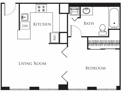 4 - Plano 1 Unidad de apartamento: 1-503Modelo de apartamento: 4$1,864Estudio, 1 Baño, 514 sq ftDisponible AhoraPlano: 14