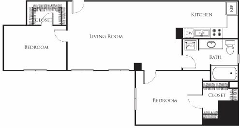 Modelo de apartamento: 15_2$1,9771 Dormitorio, 1 Baño, 756 sq ftDisponible Ahora![]()