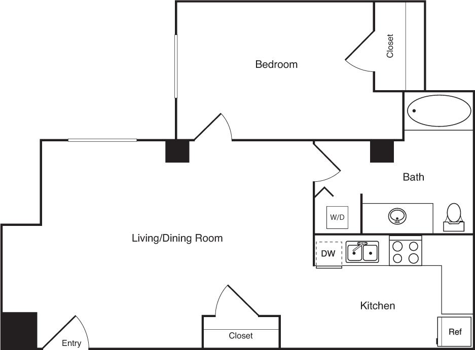 Modelo de apartamento: 15$2,2621 Dormitorio, 1 Baño, 756 sq ftDisponible Ahora![]()