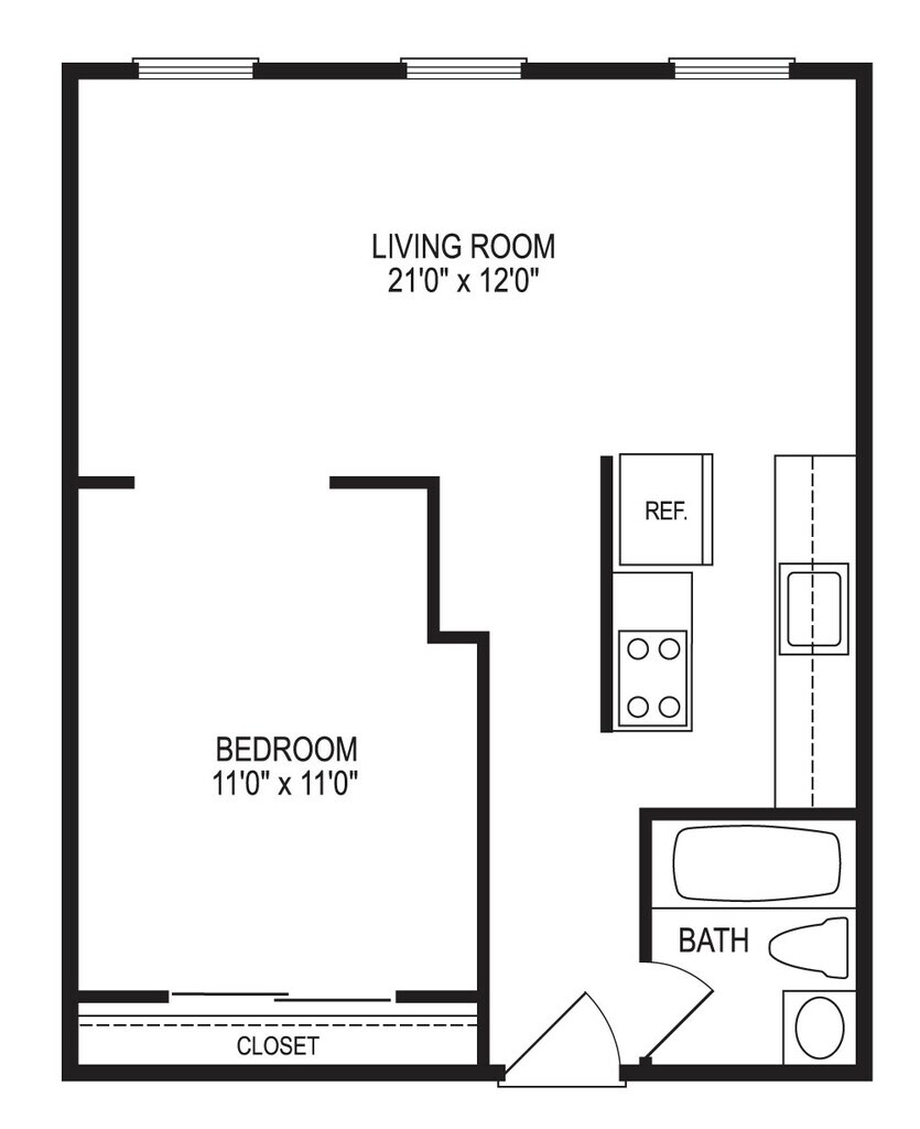 Modelo de apartamento: The Saco1 Dormitorio, 1 Baño, 600 sq ftNo Disponible![]()