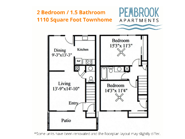 2 Dormitorios, 1.5 Baños, 1110 pies²El más grandeEsta opción tiene las unidades más grandes para este modeloGalería del Modelo