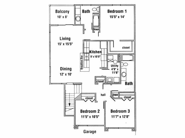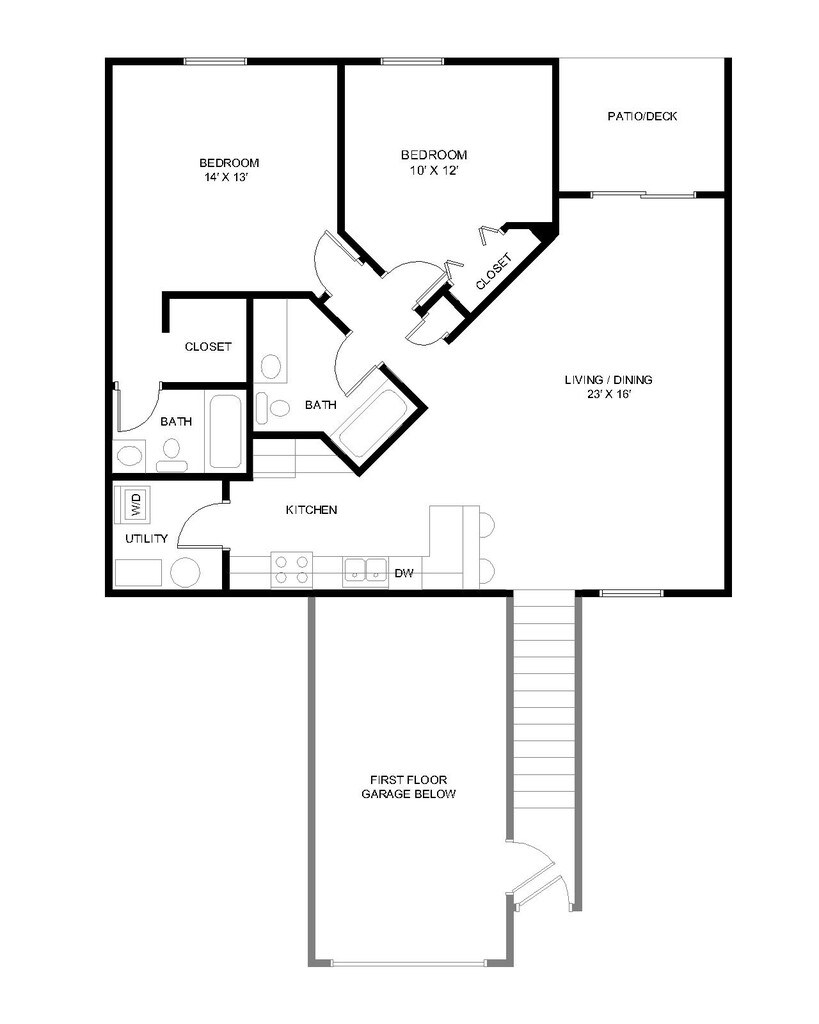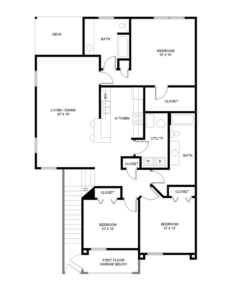 Remington A | Townhome - Plano 1 Unidad de apartamento: 5306MLModelo de apartamento: Remington A | TownhomeLlame para Precios2 Dormitorios, 2.5 Baños, 1850 sq ftDisponible AhoraLinden | Apartment