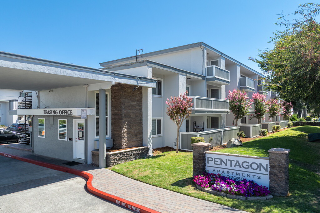 Pentagon Apartments ofrece apartamentos estilo jardín de 1, 2 y 3 habitaciones en Fremont, CA. Fantásticas comodidades + Excelente ubicación cerca de BART de Fremont.