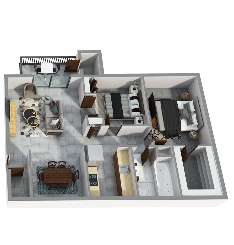 Modelo de apartamento: 2x1ADesde $1,2992 Dormitorios, 1 Baño, 864 sq ftDisponible Ahora![]()
