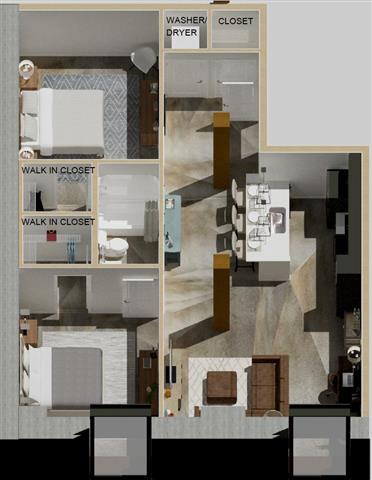 2 Dormitorios, 1 Baño, 934 pies²Galería del Modelo