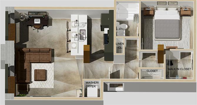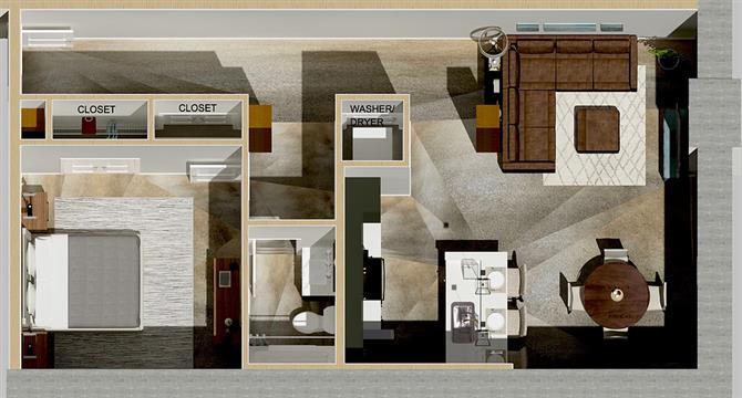 1 Dormitorio, 1 Baño, 667 pies²Galería del Modelo