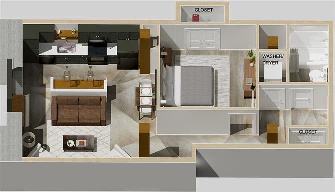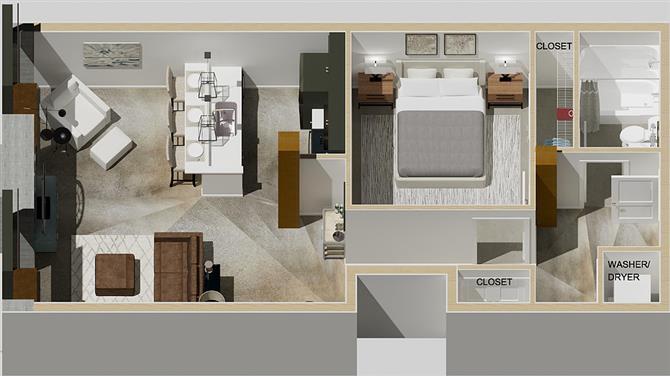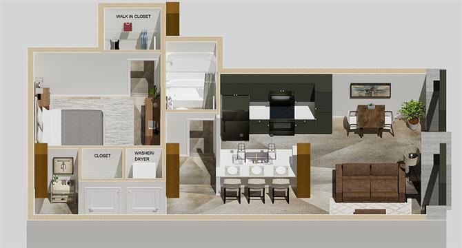 1 Dormitorio, 1 Baño, 738 pies²Galería del Modelo