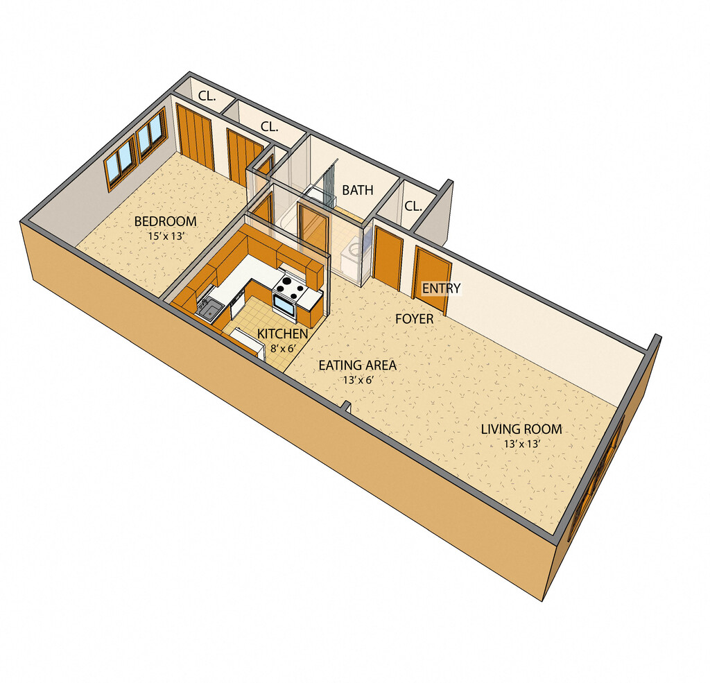 1 Dormitorio, 1 Baño, 640-676 pies²Disponible AhoraGalería del Modelo