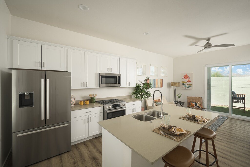 Peralta Vista offers brand-new open-one bedroom and traditional one- and two-bedroom detached residences for lease in Mesa, Arizona. The pet-friendly community features resort-style amenities like an expansive swimming pool, relaxing spa, and luxurious sundeck with shade canopy. Step into the modern-day when you come home. Whip up your favorite meals on stainless-steel appliances and sleek quartz countertops. Turn up the music and revel in the privacy of an enclosed yard, with covered patio and artificial turf. These sophisticated touches elevate your lifestyle. This is your retreat. As the sun sets, hike up the Red Mountain Trail to see the stunning Mesa, Arizona, skyline light up – it’s just a few minutes from home. Located near the Red Mountain Parkway and 20 miles from downtown Phoenix, you’ll find convenience dipped in elegance at Peralta Vista.