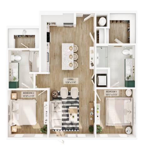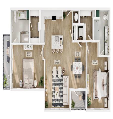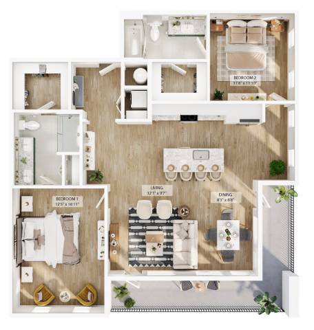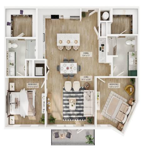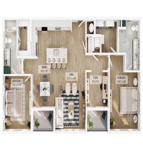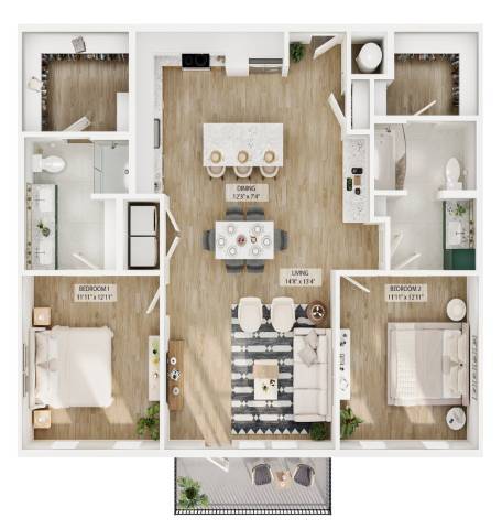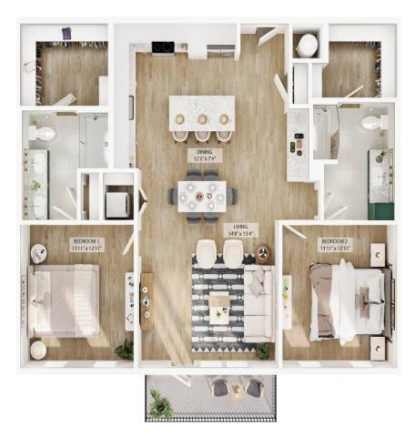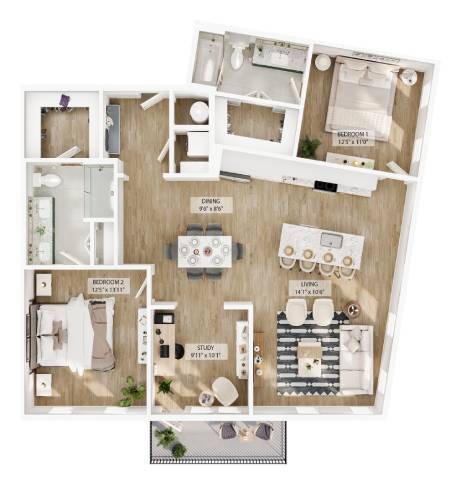 Modelo de apartamento: A4Desde $1,9951 Dormitorio, 2 Baños, 776-800 sq ftDisponible Ahora![]()