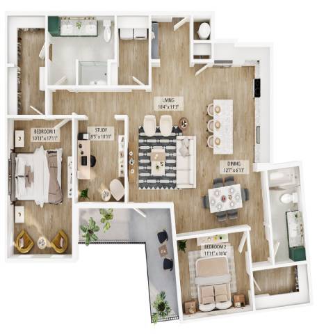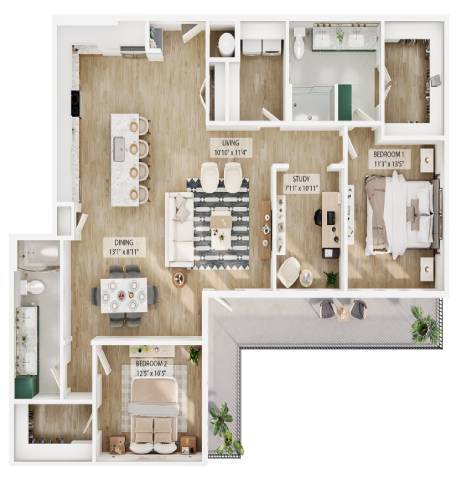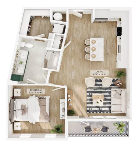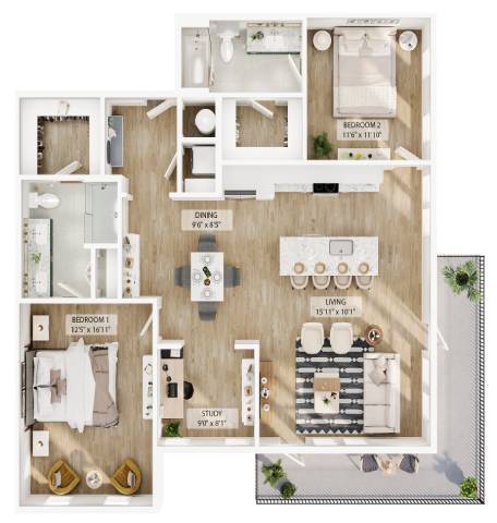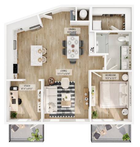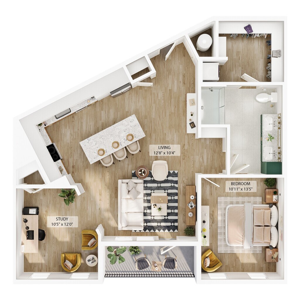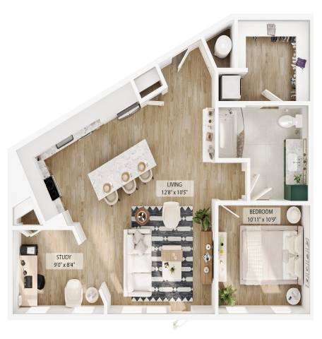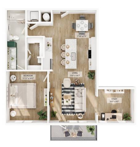 Modelo de apartamento: S1Desde $1,979Estudio, 1 Baño, 613 sq ftDisponible Ahora![]()