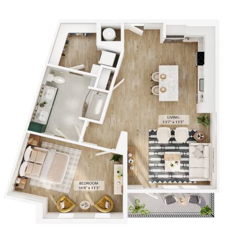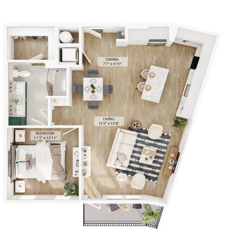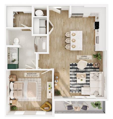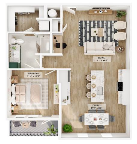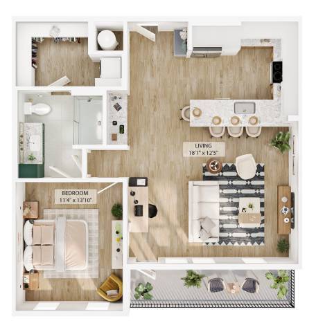 1 Dormitorio, 1 Baño, 736 pies²Disponible AhoraGalería del Modelo