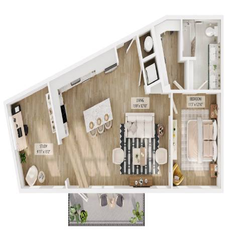 Estudio, 1 Baño, 613 pies²Disponible AhoraGalería del Modelo