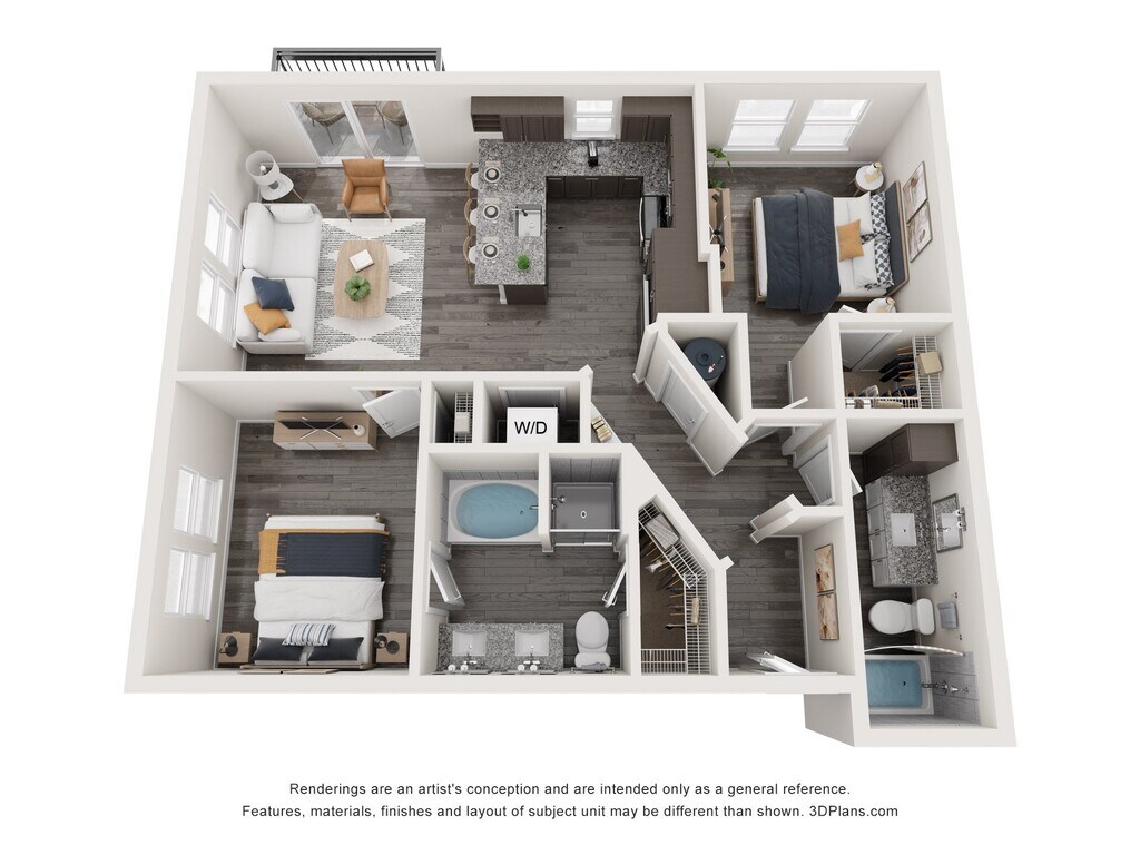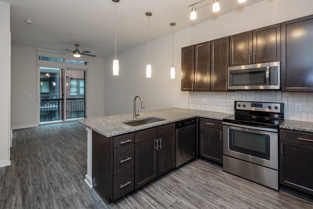Nuestros apartamentos de Germantown ofrecen gran cantidad de espacio con elementos de encanto distinguidos. Tres habitaciones de lujo, tiene impresionantes techos de 10' y ventanas del piso al techo con tu exclusiva vista de la ciudad. Las cocinas gourmet tienen a tu elección tres encimeras de piedra de diseñador, junto con placa para salpicaduras de azulejo a medida y gabinetes preparados con maestría.