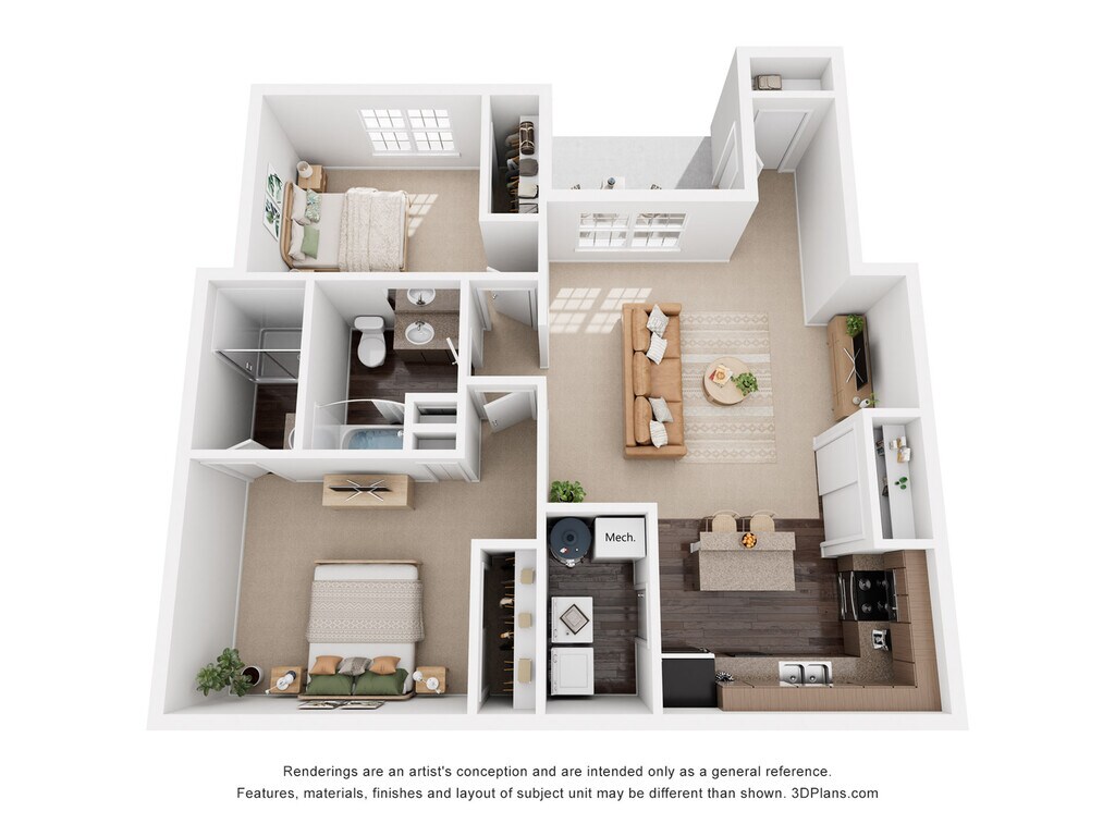 1 Dormitorio, 1 Baño, 750 pies²Disponible AhoraGalería del Modelo