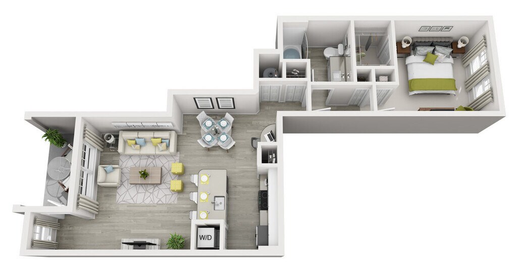 Modelo de apartamento: A5Desde $1,5071 Dormitorio, 1 Baño, 760 sq ftDisponible AhoraLos planos de la planta son una interpretación artística. Todas las dimensiones son aproximadas. Los tamaños o el detalle del producto real y sus especificaciones pueden variar. No todas las características están disponibles en todos los hogares para rentar. Los precios y la disponibilidad están sujetos a cambios. El alquiler que se muestra es mensual. Se pueden aplicar ciertos cargos, por ejemplo, entrega de paquetes, recolección de basura, agua, servicios, etc. Depositos varian. Consulta a un representante para conocer detalles.