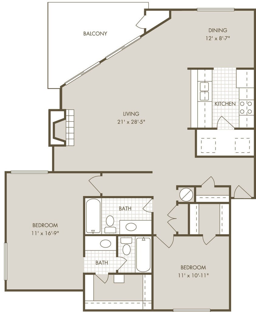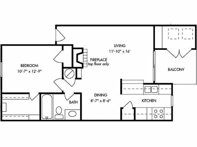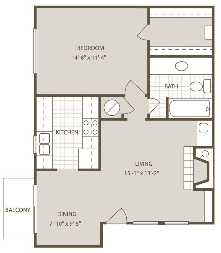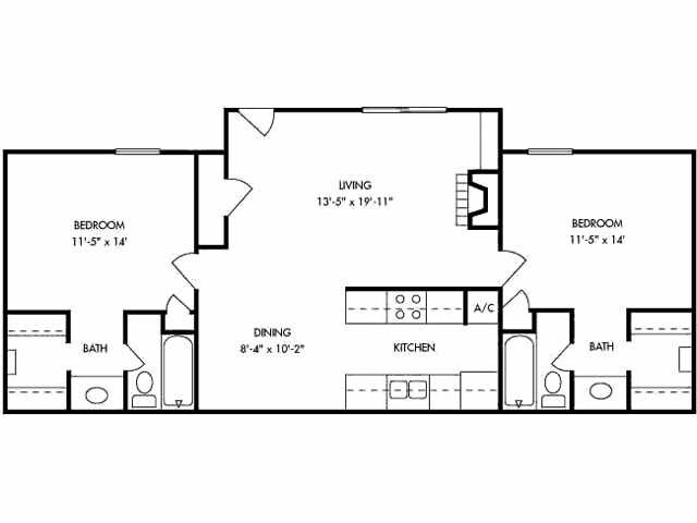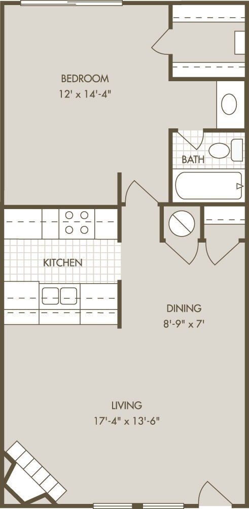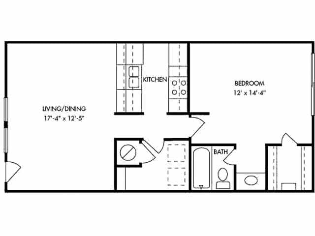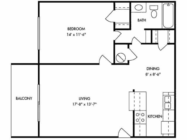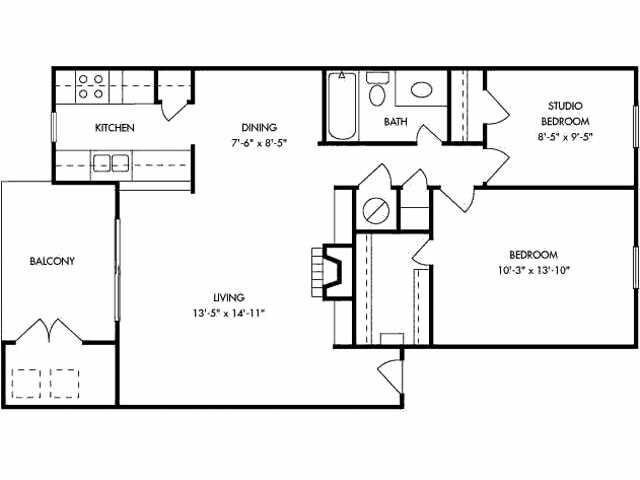 Modelo de apartamento: A5Desde $8851 Dormitorio, 1 Baño, 700 sq ftDisponible November 21, 2025PlanosFotos![]()