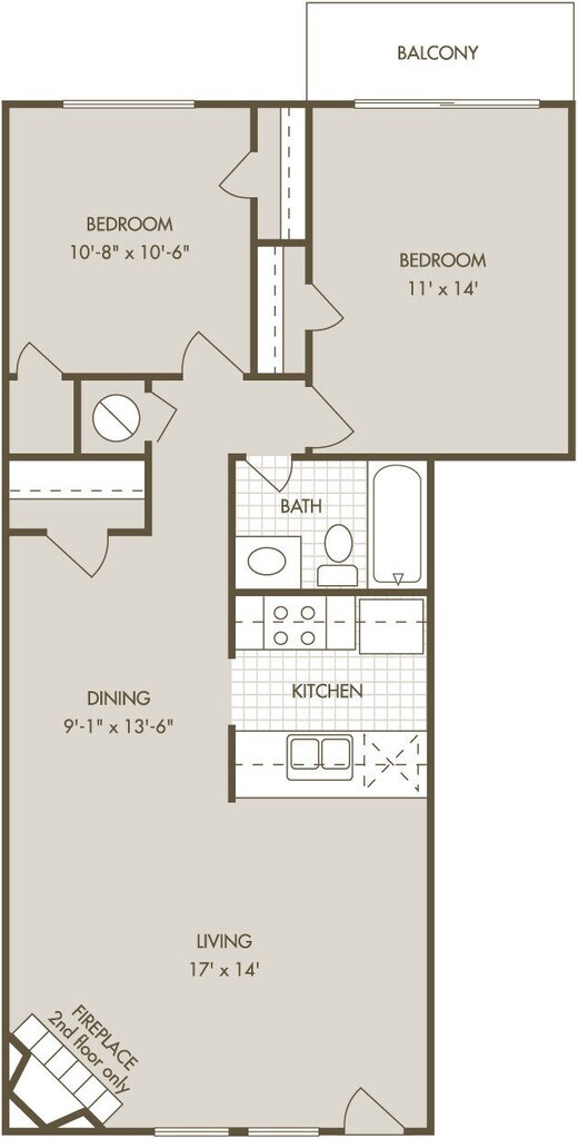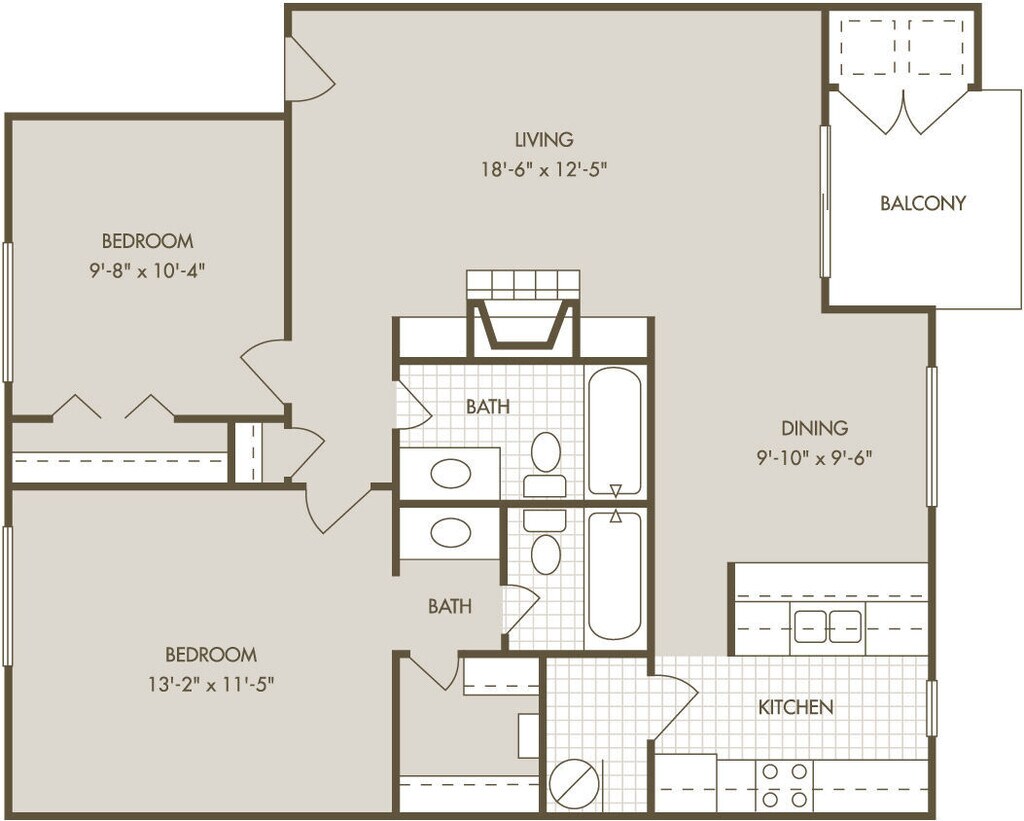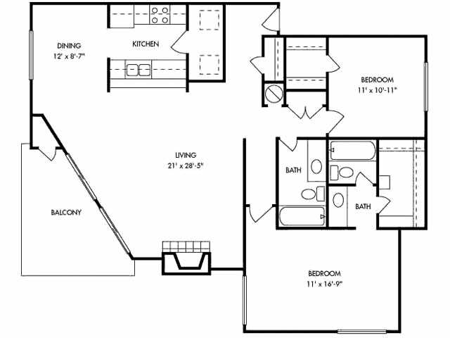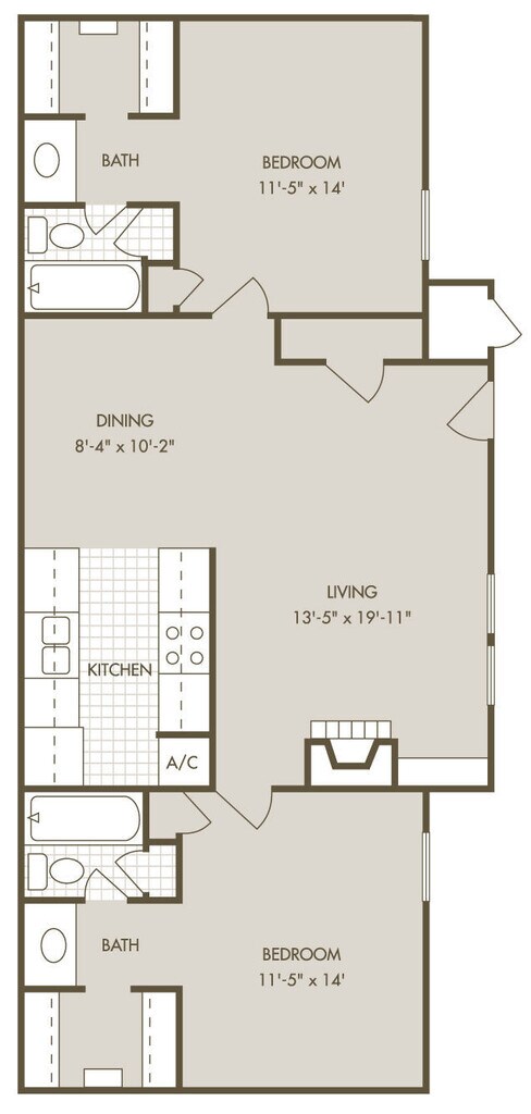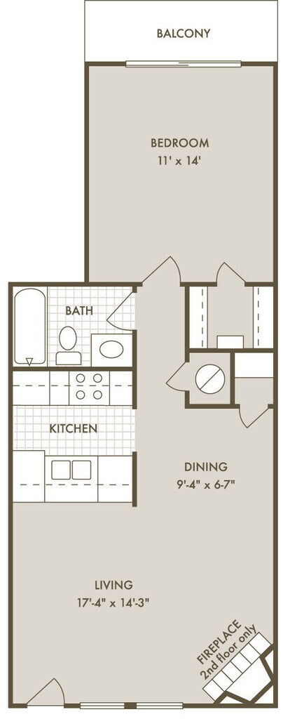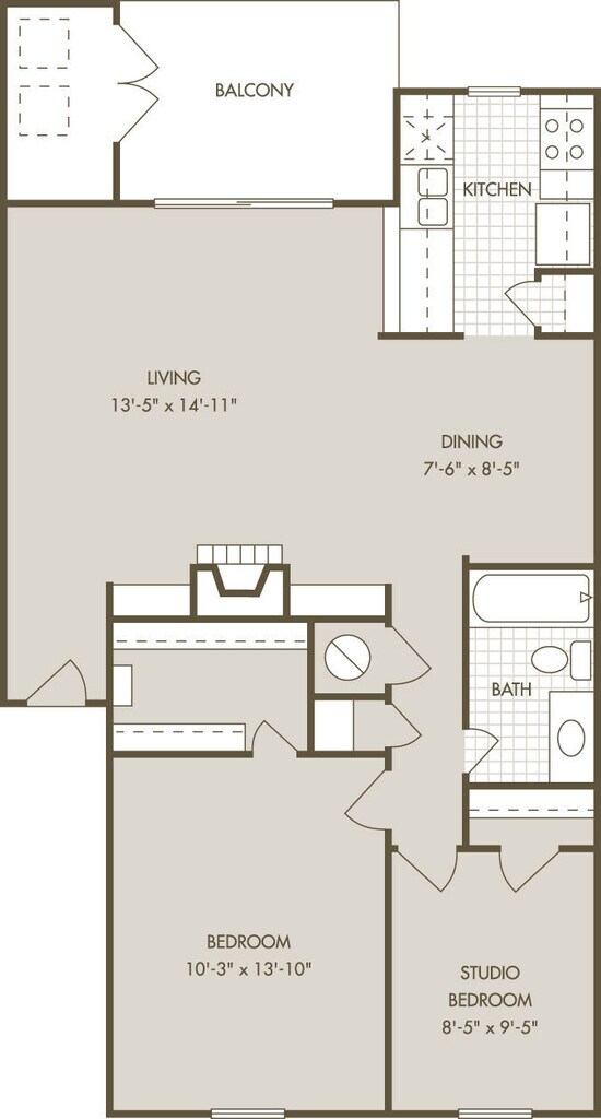 Modelo de apartamento: A5Desde $8851 Dormitorio, 1 Baño, 700 sq ftDisponible November 21, 2025PlanosFotos![]()