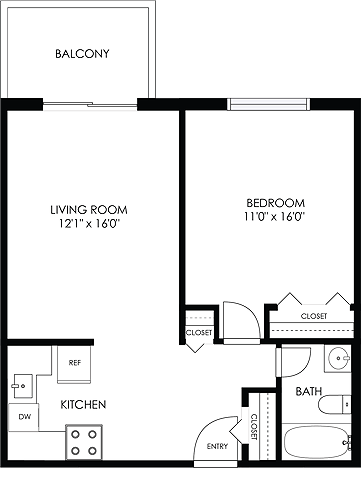 1 Dormitorio, 1 Baño, 625 pies²Disponible AhoraGalería del Modelo