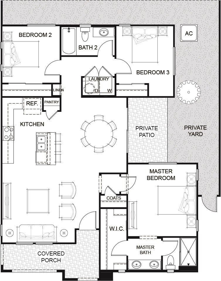 Modelo de apartamento: A1Desde $2,0251 Dormitorio, 1 Baño, 721 sq ftDisponible Ahora![]()