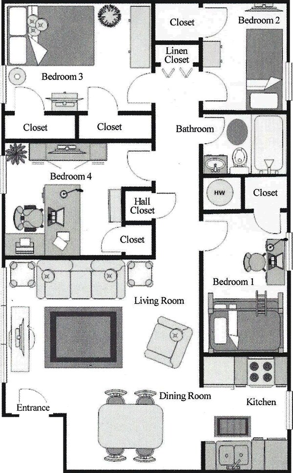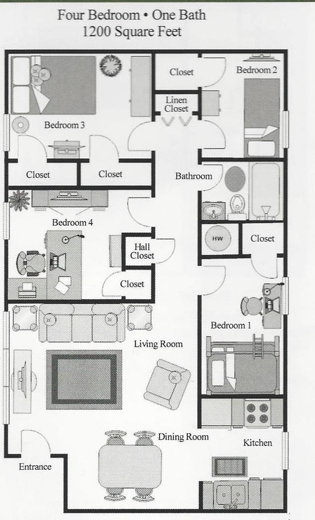 Modelo de apartamento: D1Llame para Precios4 Dormitorios, 1 Baño, 1200 sq ftNo Disponible![]()