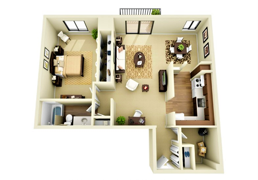 Modelo de apartamento: 1 Bedroom / 1 Bathroom DeluxeDesde $1,1401 Dormitorio, 1 Baño, 860 sq ftDisponible Ahora![]()