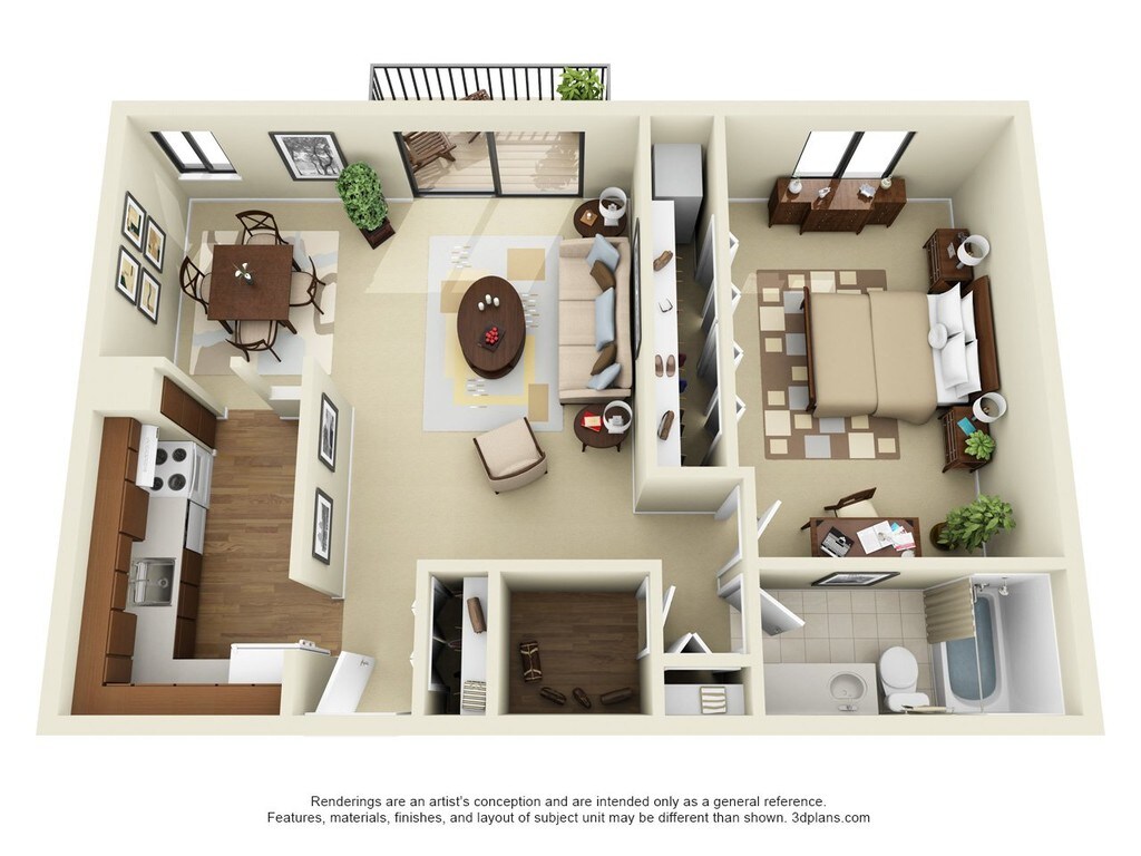 1 Dormitorio, 1 Baño, 860 pies²Disponible AhoraGalería del Modelo