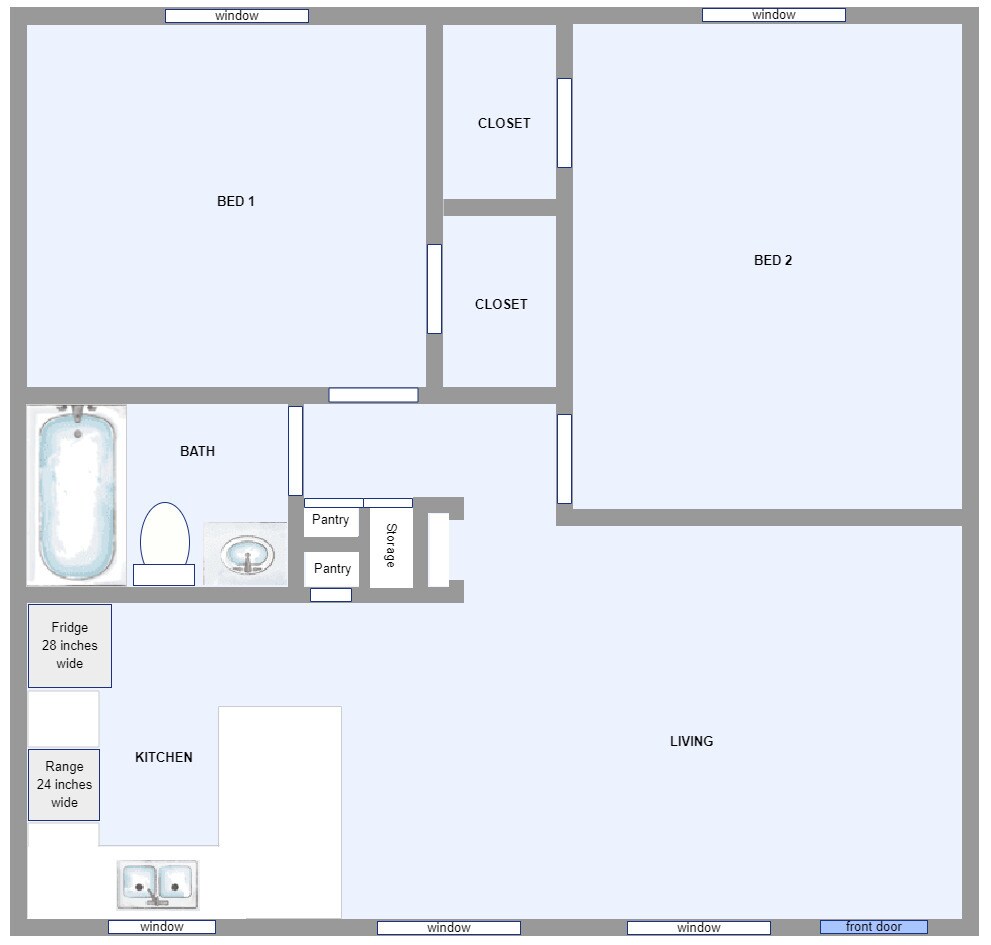 2 Dormitorios, 1 Baño, 850 pies²Detalles de Diponibilidad